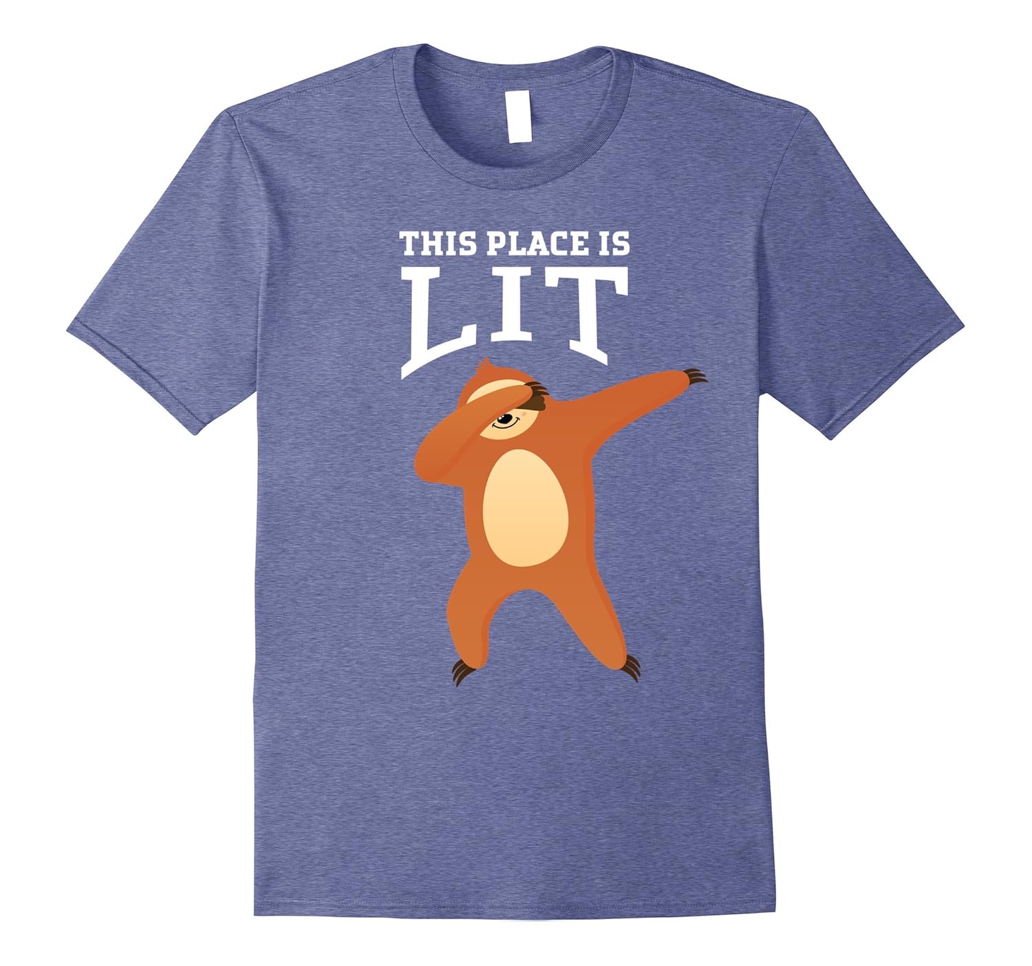 Solid colors: 100% Cotton; Heather Grey: 90% Cotton, 10% Polyester; All Other Heathers: 65% Cotton, 35% Polyester, Imported, Machine wash cold with like colors, dry low heat, This place is Lit, 100 percent, hundo p. Dancing dabbing sloth character with trendy urban slang. Fun for all ages, animal lover shirt. Modern dancing celebration t-shirt. Kids love hip hop and dabbing. Hand drawn sloth graphic t-shirt. Light it up, get the party started. The dabbing dancing sloth is here to get the music pumping and the people jiving. Hip hop sloth doing a popular dance. Slow lazy sloth can”t resist the sound of the music and just has to get up and get lit with us. Lightweight, Classic fit, Double-needle sleeve and bottom hem