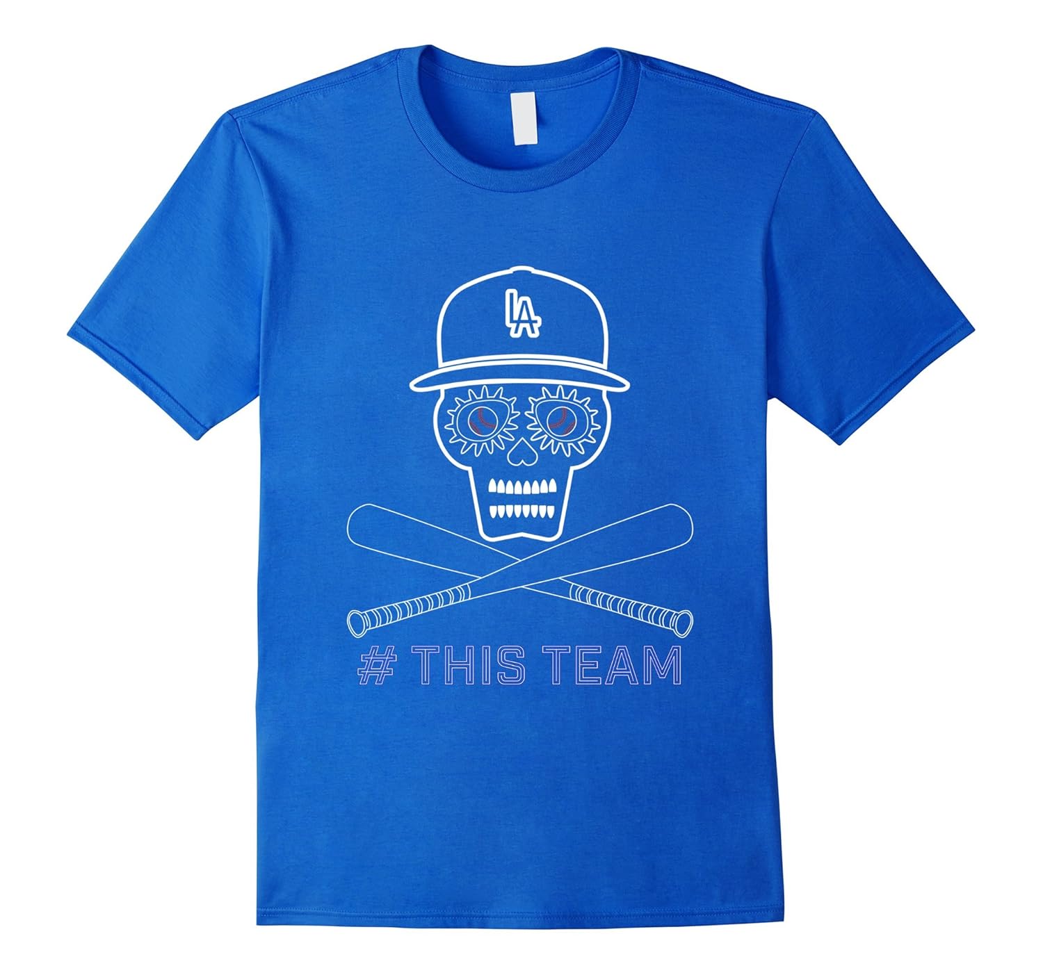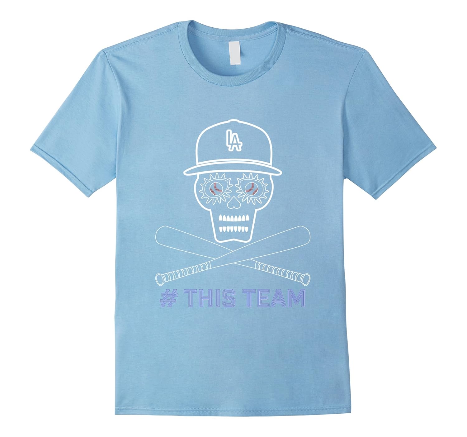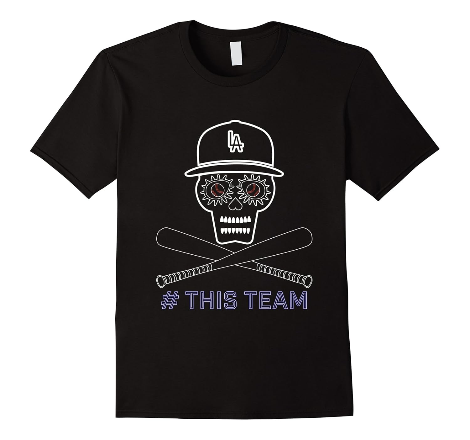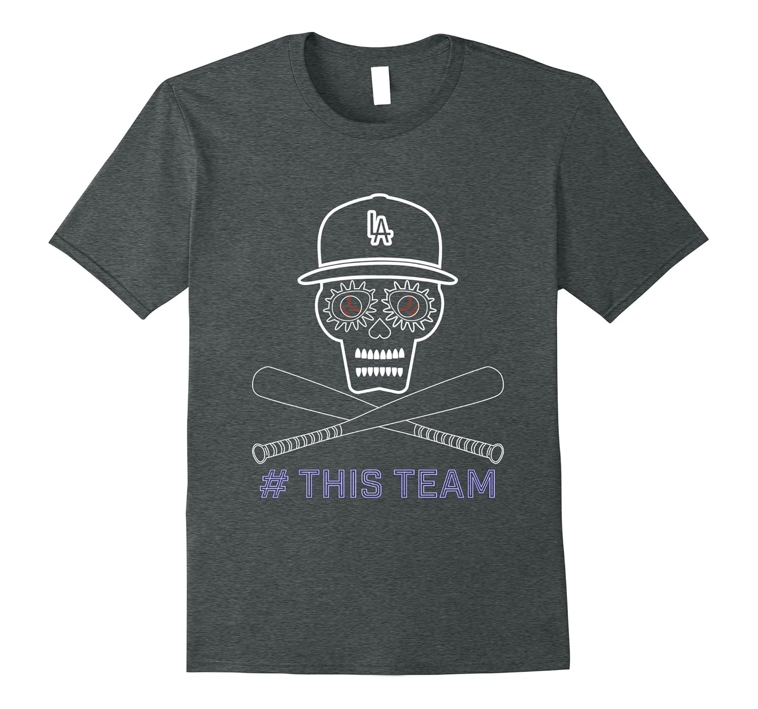 Solid colors: 100% Cotton; Heather Grey: 90% Cotton, 10% Polyester; All Other Heathers: 65% Cotton, 35% Polyester, Imported, Machine wash cold with like colors, dry low heat, Cheers to the Los Angeles California Baseball team and everyone”s favorite red bearded dodger. An excellent time to grab this exclusive ThisTeam Los Angeles Baseball Rally Skull Shirt. Prepare for their next baseball game with this spooky doyer shirt!, Celebrate the LA baseball season with this original LA thisteam t-shirt!The “This Team Los Angeles Baseball Skull Shirt” is a great Christmas Gift, Birthday Gift, Father”s Day Gift, or everyday gift for any LA baseball fan!, Lightweight, Classic fit, Double-needle sleeve and bottom hem
