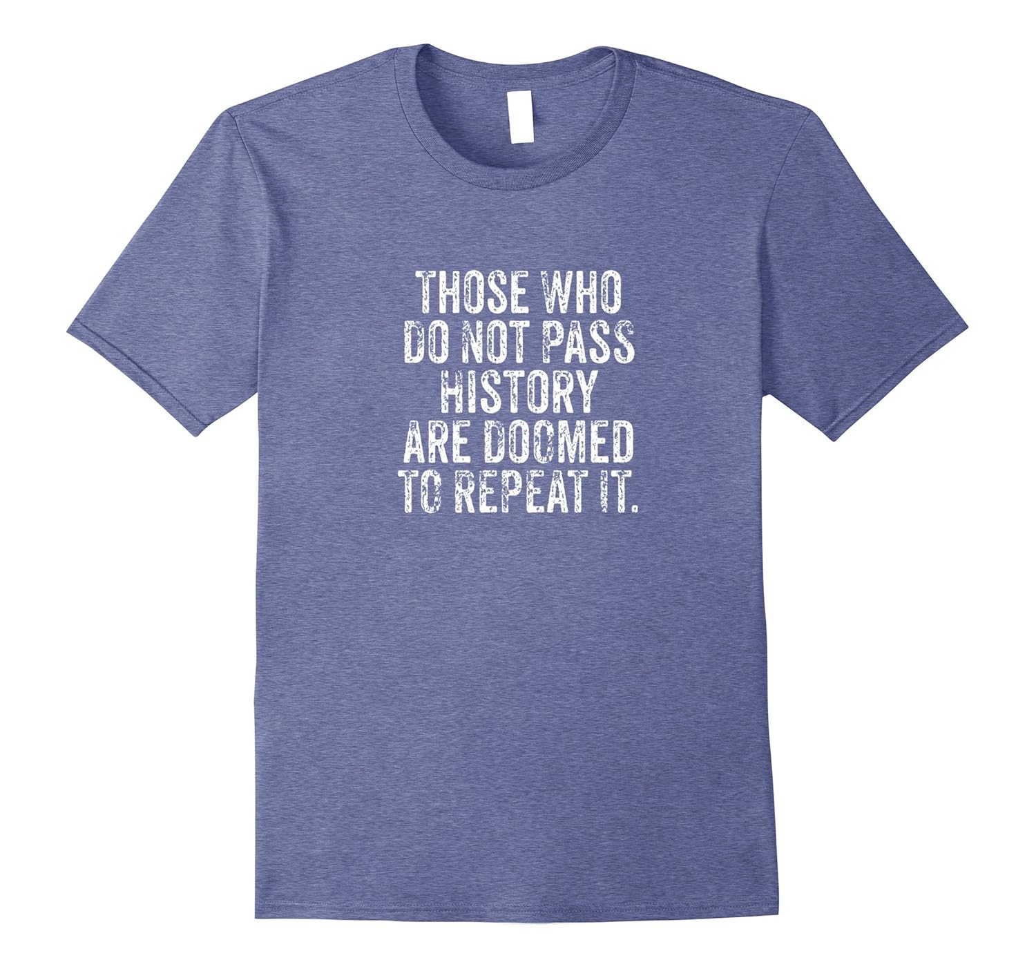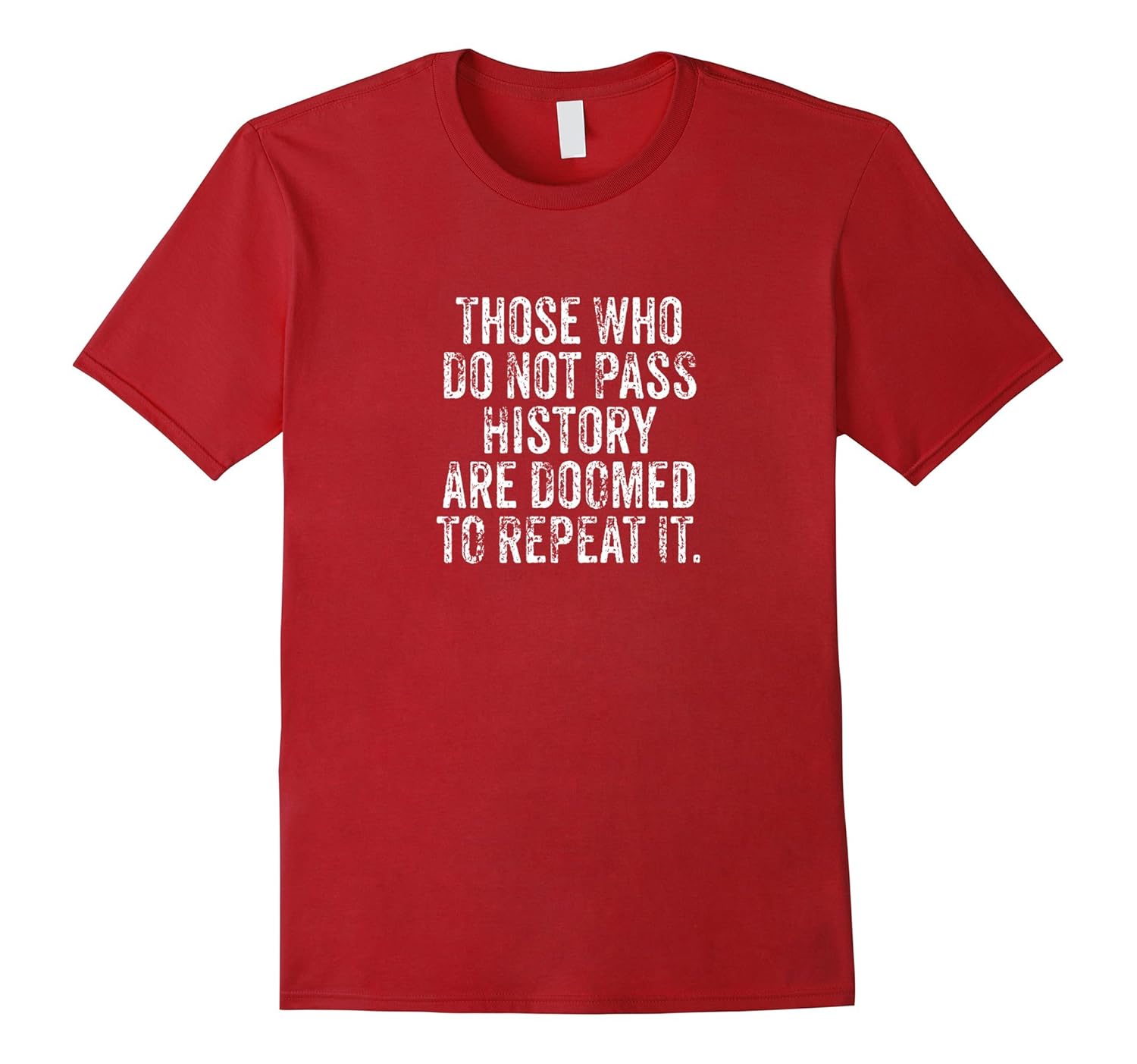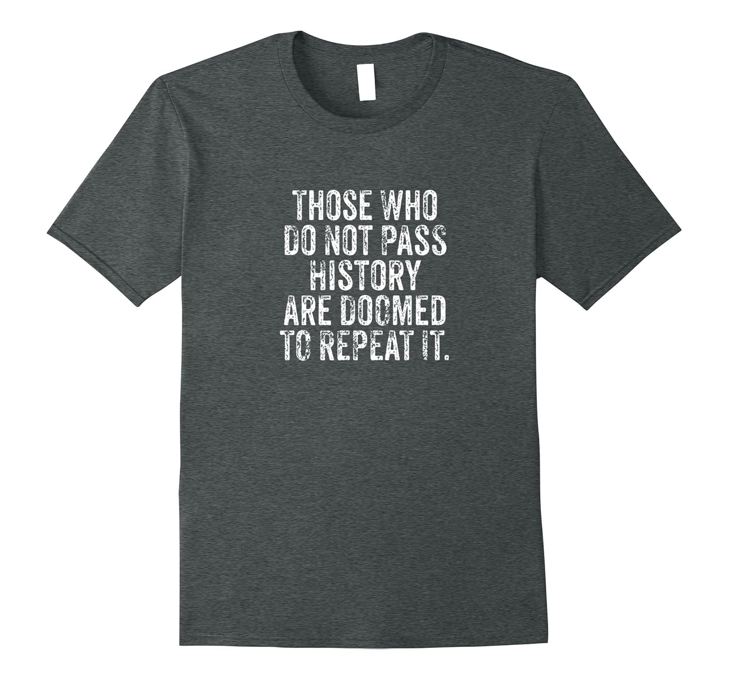 Solid colors: 100% Cotton; Heather Grey: 90% Cotton, 10% Polyester; All Other Heathers: 65% Cotton, 35% Polyester; Imported; Machine wash cold with like colors, dry low heat; A phrase all history teachers should repeat: Those who do not pass history are doomed to repeat it. This t shirt makes a great gift for school history teachers. It serves as a reminder to history students to work hard in class or repeat it.; Novelty graphic tee is perfect for your favorite history teacher this school year.; Lightweight, Classic fit, Double-needle sleeve and bottom hem
