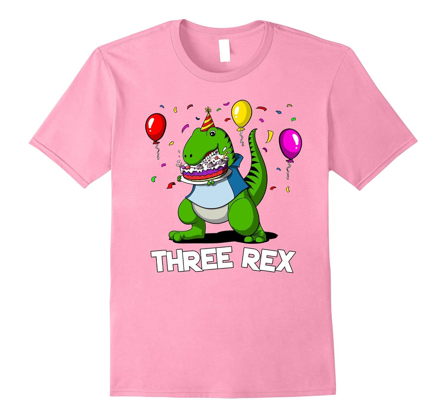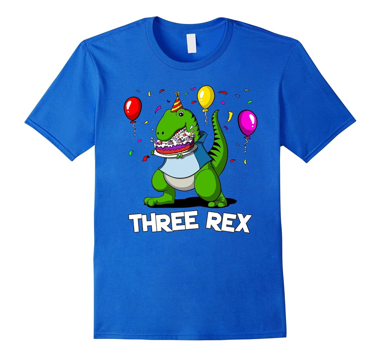 Solid colors: 100% Cotton; Heather Grey: 90% Cotton, 10% Polyester; All Other Heathers: 65% Cotton, 35% Polyester, Imported, Machine wash cold with like colors, dry low heat, If you love prehistoric creatures, short arms jokes and fantasy animals purchase this cartoon comedy Three Rex 3rd Birthday Party Dinosaur tee for a celebration or buy it for a 3 year old child and dinosaur lover. This funny hilarious shirt features a cartoon T-Rex dinosaur eating a birthday cake, balloons and is suitable for a dinosaur lover with a sense of humor. Lightweight, Classic fit, Double-needle sleeve and bottom hem