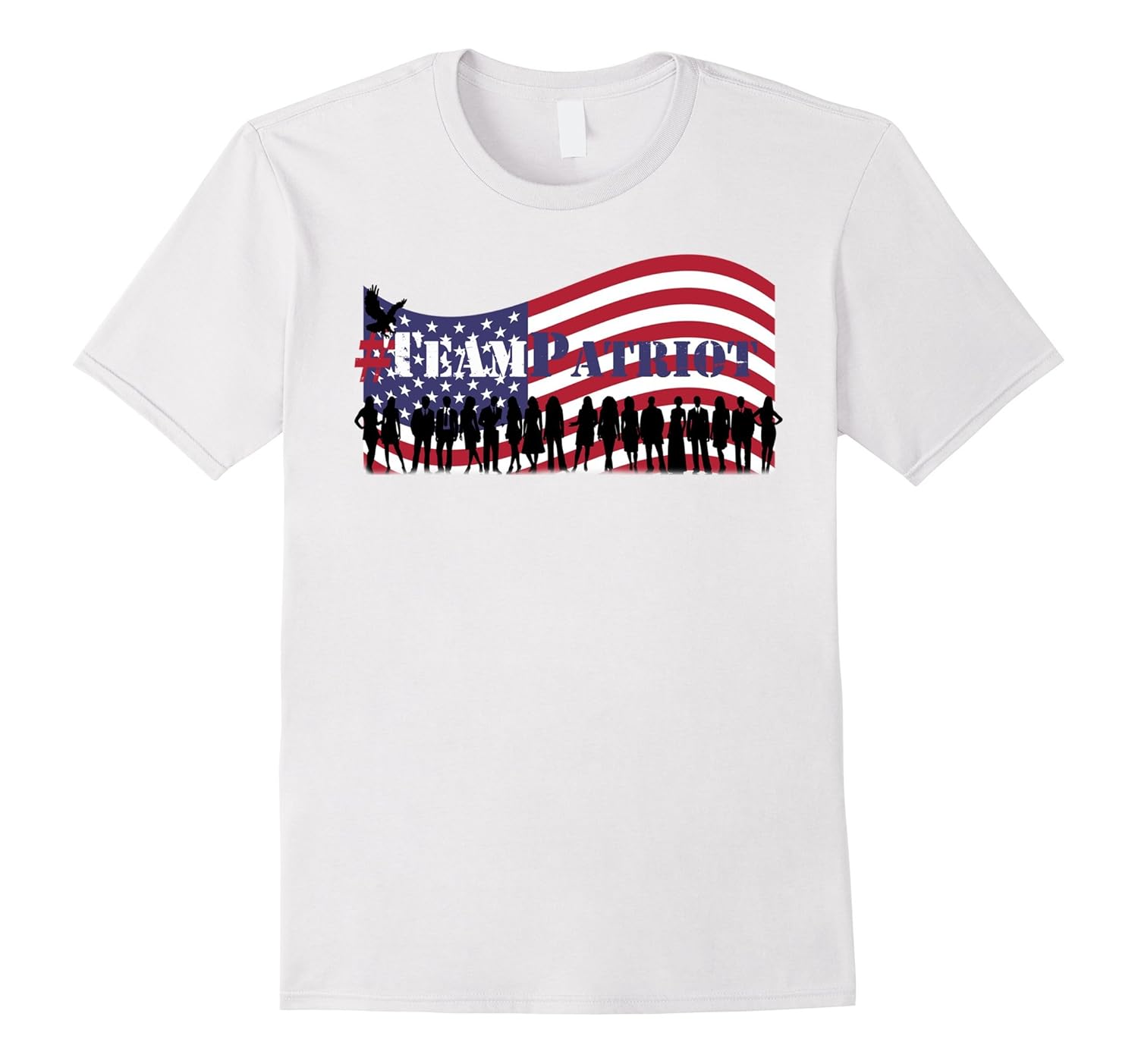 Solid colors: 100% Cotton; Heather Grey: 90% Cotton, 10% Polyester; All Other Heathers: 65% Cotton, 35% Polyester, Imported, Machine wash cold with like colors, dry low heat, TeamPatriot – 5 colors available, more designs will be added in the future!, Lightweight, Classic fit, Double-needle sleeve and bottom hem