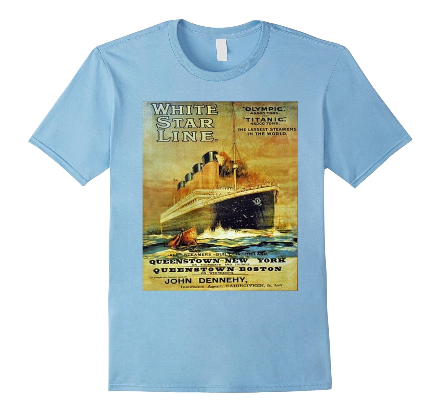Solid colors: 100% Cotton; Heather Grey: 90% Cotton, 10% Polyester; All Other Heathers: 65% Cotton, 35% Polyester, Imported, Machine wash cold with like colors, dry low heat, Titanic White Star Line Steamer Vintage Poster T-Shirt, Oceanliner, White Star Line, Ship, Boat, RMS Titanic, Iceberg, Vacations, Travel, Tees, Tee Shirts, T-Shirts, Tshirt, Tshirts, T Shirt, T Shirts, Mens, Womens, Childrens, Ladies, Kids, Lightweight, Classic fit, Double-needle sleeve and bottom hem