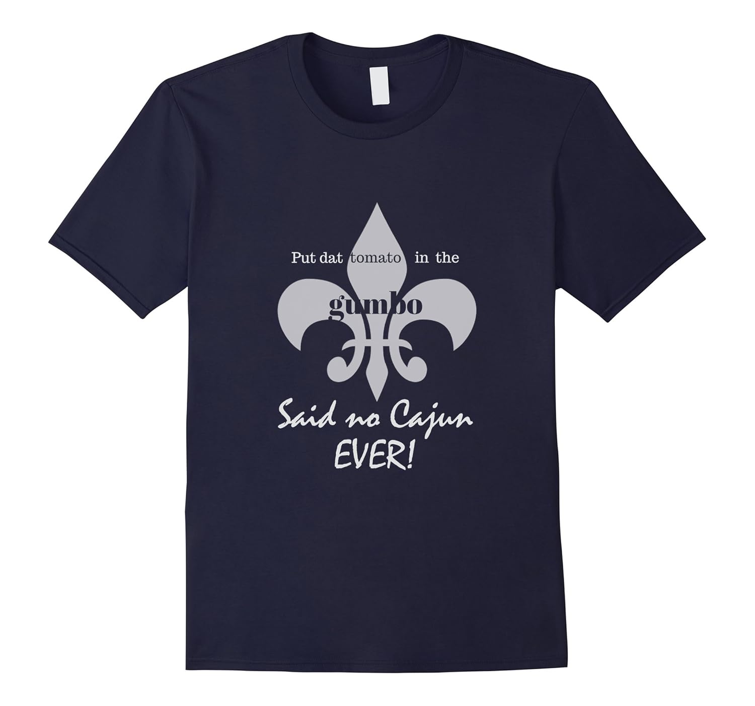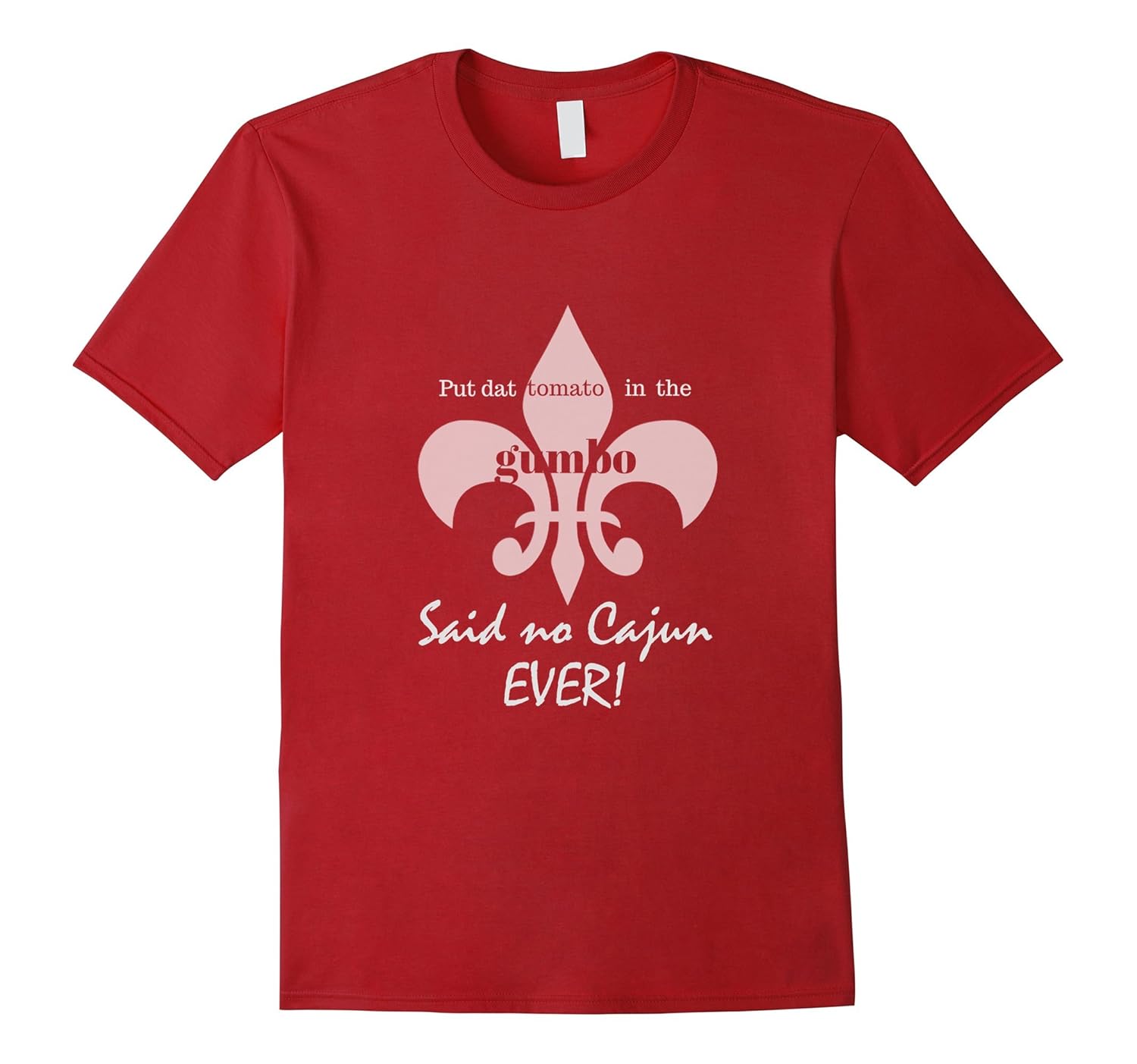 Solid colors: 100% Cotton; Heather Grey: 90% Cotton, 10% Polyester; All Other Heathers: 65% Cotton, 35% Polyester, Imported, Machine wash cold with like colors, dry low heat, Any real Cajun loves a hot bowl of gumbo. Sausage gumbo, chicken gumbo, shrimp gumbo…but tomato in the gumbo. No, chere! That”s pas bon! Any Cajun will get a kick out of this gumbo tee shirt. This Cajun tshirt is the perfect gift for any real Cajun who knows how to cook up a gumbo! The fleur de lis design is a great addition that really screams out with your Cajun pride and heritage. Order a size up for a looser fit. Lightweight, Classic fit, Double-needle sleeve and bottom hem