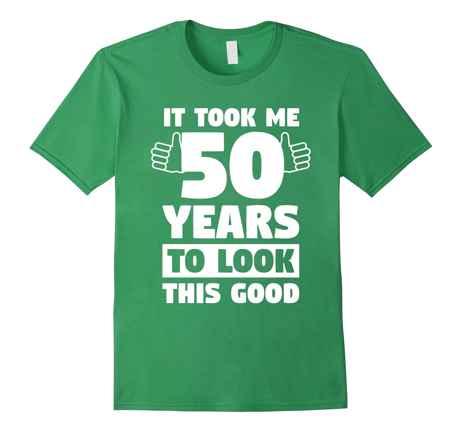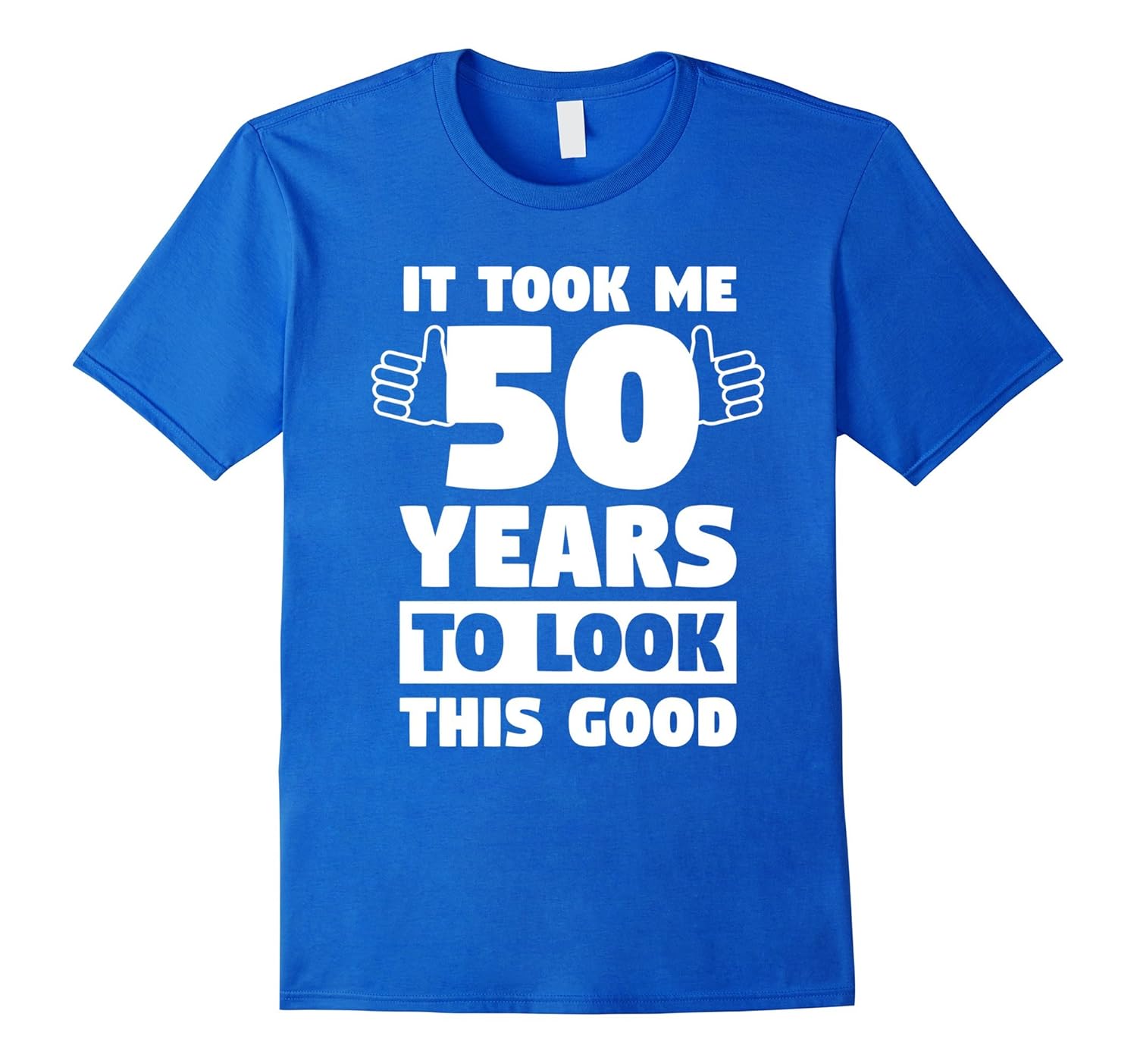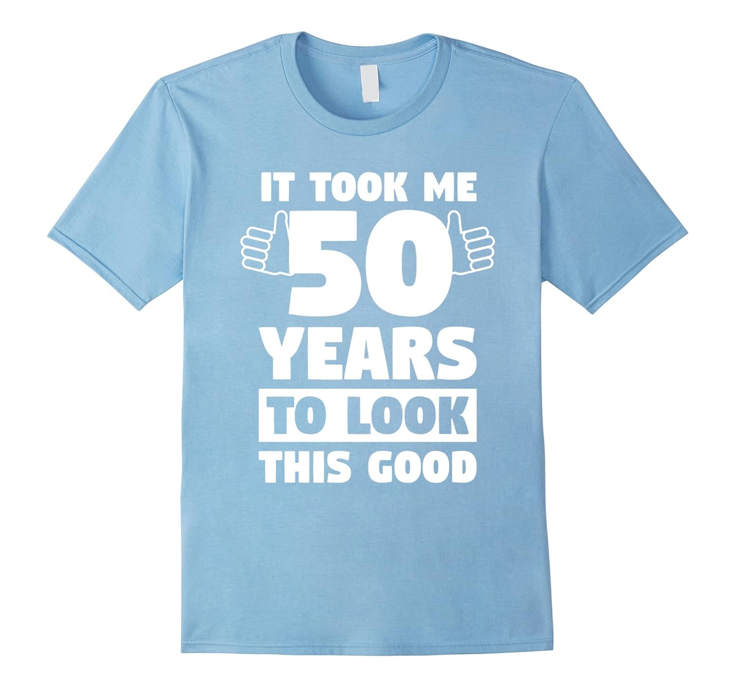 Solid colors: 100% Cotton; Heather Grey: 90% Cotton, 10% Polyester; All Other Heathers: 65% Cotton, 35% Polyester, Imported, Machine wash cold with like colors, dry low heat, It Took Me 50 Years To Look This Good T Shirt with thumbs pointing up. This funny 50th b-day tshirt for men and women is a humorous gift for your 50 yr old mom, dad, grandfather and grandmother to wear at their 50th birthday party and all year. Your 50 year old husband, wife, father, mother, uncle or aunt will love this funny 50th birthday t-shirt. It”s also a great present for Halloween, Christmas, Mother”s Day or Father”s Day. Get your awesome fifty year old birthday tee shirt now. Lightweight, Classic fit, Double-needle sleeve and bottom hem