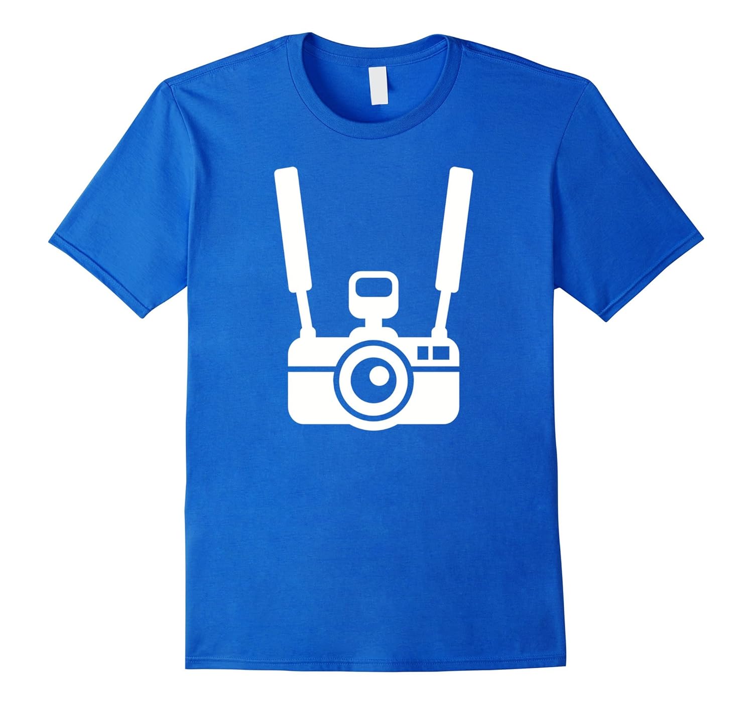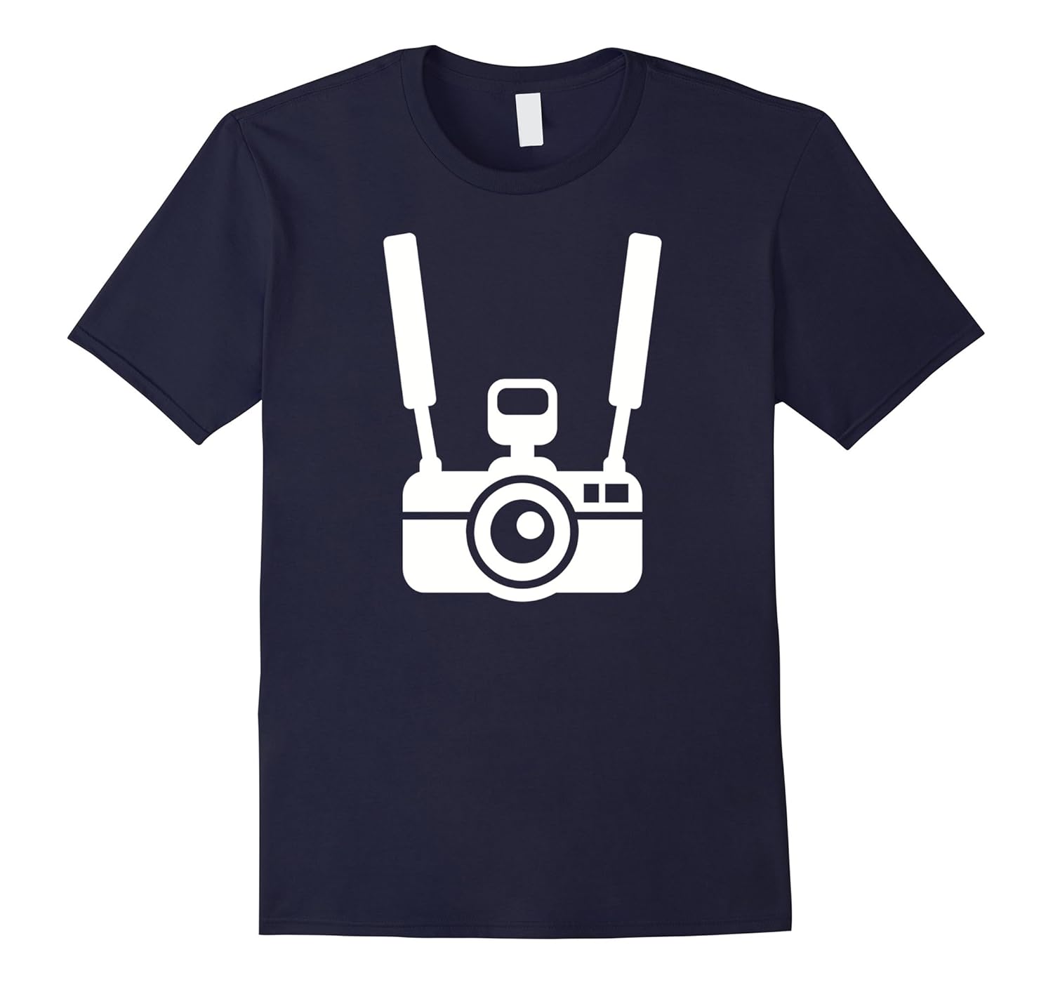 Solid colors: 100% Cotton; Heather Grey: 90% Cotton, 10% Polyester; All Other Heathers: 65% Cotton, 35% Polyester, Imported, Machine wash cold with like colors, dry low heat, Camera hanging on straps of tourist for all photographer and photography fans on vacation. Lightweight, Classic fit, Double-needle sleeve and bottom hem