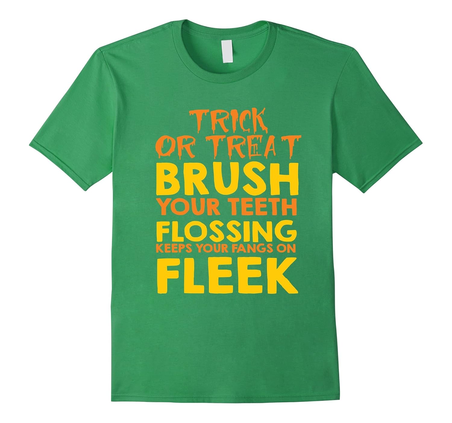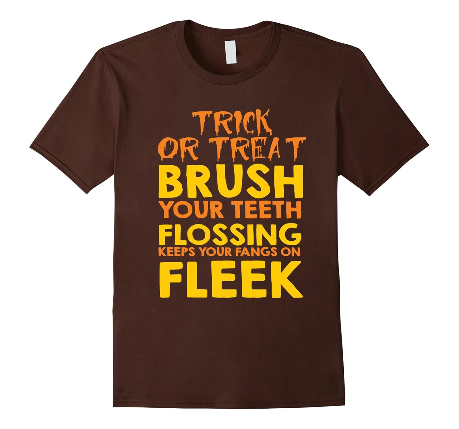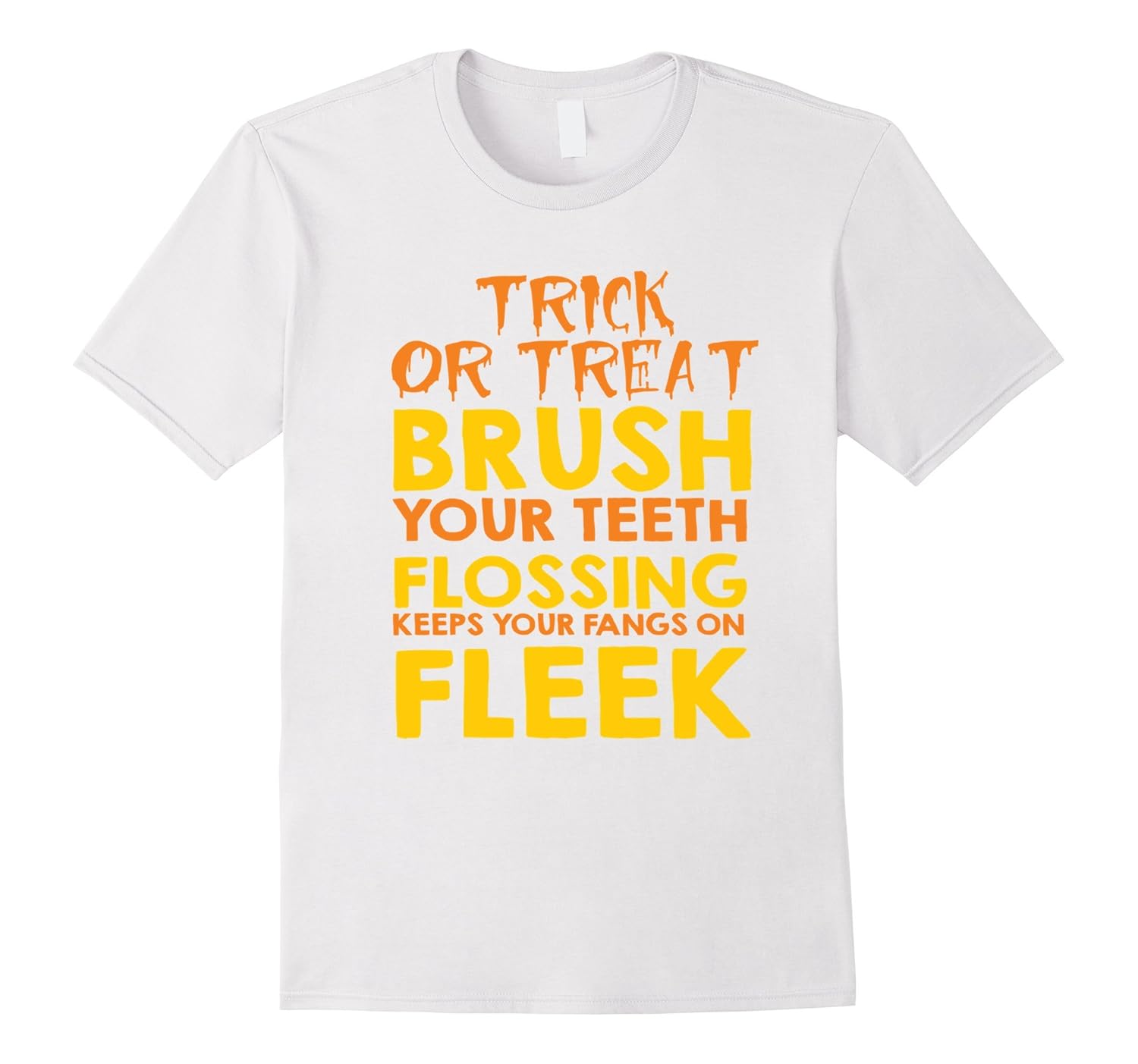 Solid colors: 100% Cotton; Heather Grey: 90% Cotton, 10% Polyester; All Other Heathers: 65% Cotton, 35% Polyester, Imported, Machine wash cold with like colors, dry low heat, Trick or Treat, Oct 31, Scary Pumpkin Face, Night moon, Witch by night, witch hat, witch”s broom, Trick or Treat Brush Your Teeth Flossing Keeps Your Fangs on Fleek t shirt, It”s the scariest time of year! Still go out to Trick or Treat and love a Halloween party. Love witches, spider, ghosts, skeletons. This t shirt is perfect for adults headed to costume parties or other Halloween festivities!, Lightweight, Classic fit, Double-needle sleeve and bottom hem