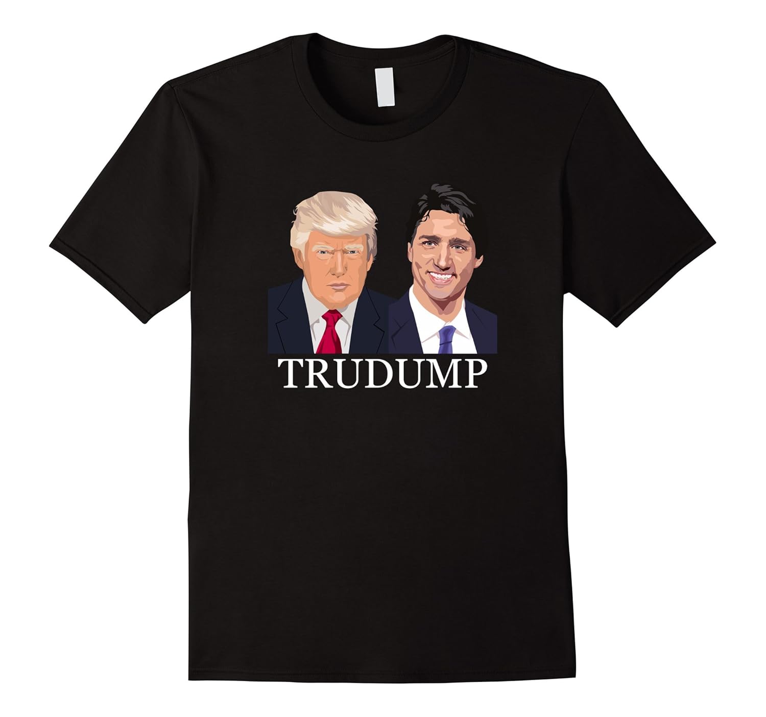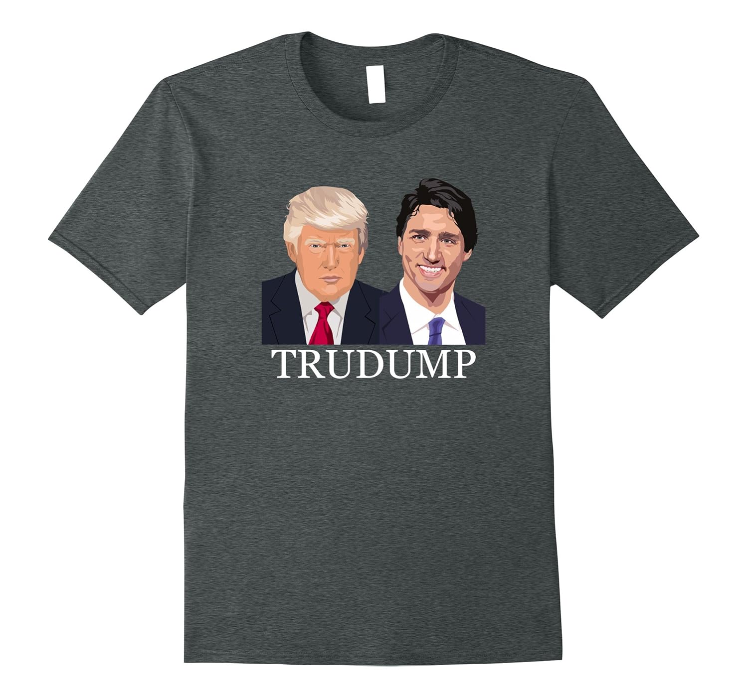 Solid colors: 100% Cotton; Heather Grey: 90% Cotton, 10% Polyester; All Other Heathers: 65% Cotton, 35% Polyester, Imported, Machine wash cold with like colors, dry low heat, Trudump t-shirt featuring Trump and Trudeau, This funny political shirt puts Donald and Justin together, Canada and America, Lightweight, Classic fit, Double-needle sleeve and bottom hem