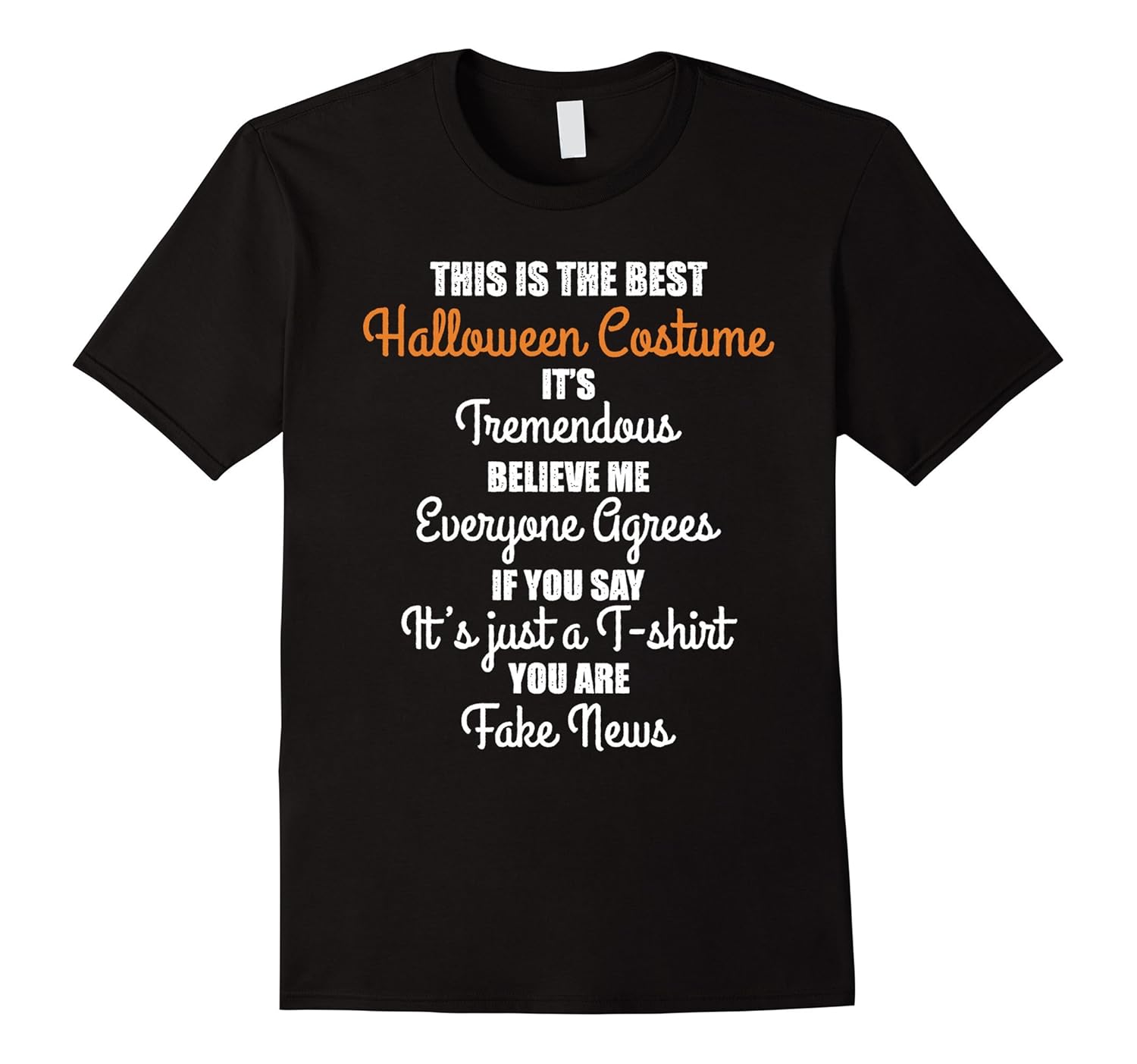 Solid colors: 100% Cotton; Heather Grey: 90% Cotton, 10% Polyester; All Other Heathers: 65% Cotton, 35% Polyester, Imported, Machine wash cold with like colors, dry low heat, Funny meme graphic for hipsters, millennials, trump fans, anti, haters, conservatives, republicans, liberals or democrats. Great joke gag gift for any political voter. Halloween costume, it”s tremendous, believe me everyone agrees, if you say it”s just a t-shirt you are fake news, Lightweight, Classic fit, Double-needle sleeve and bottom hem