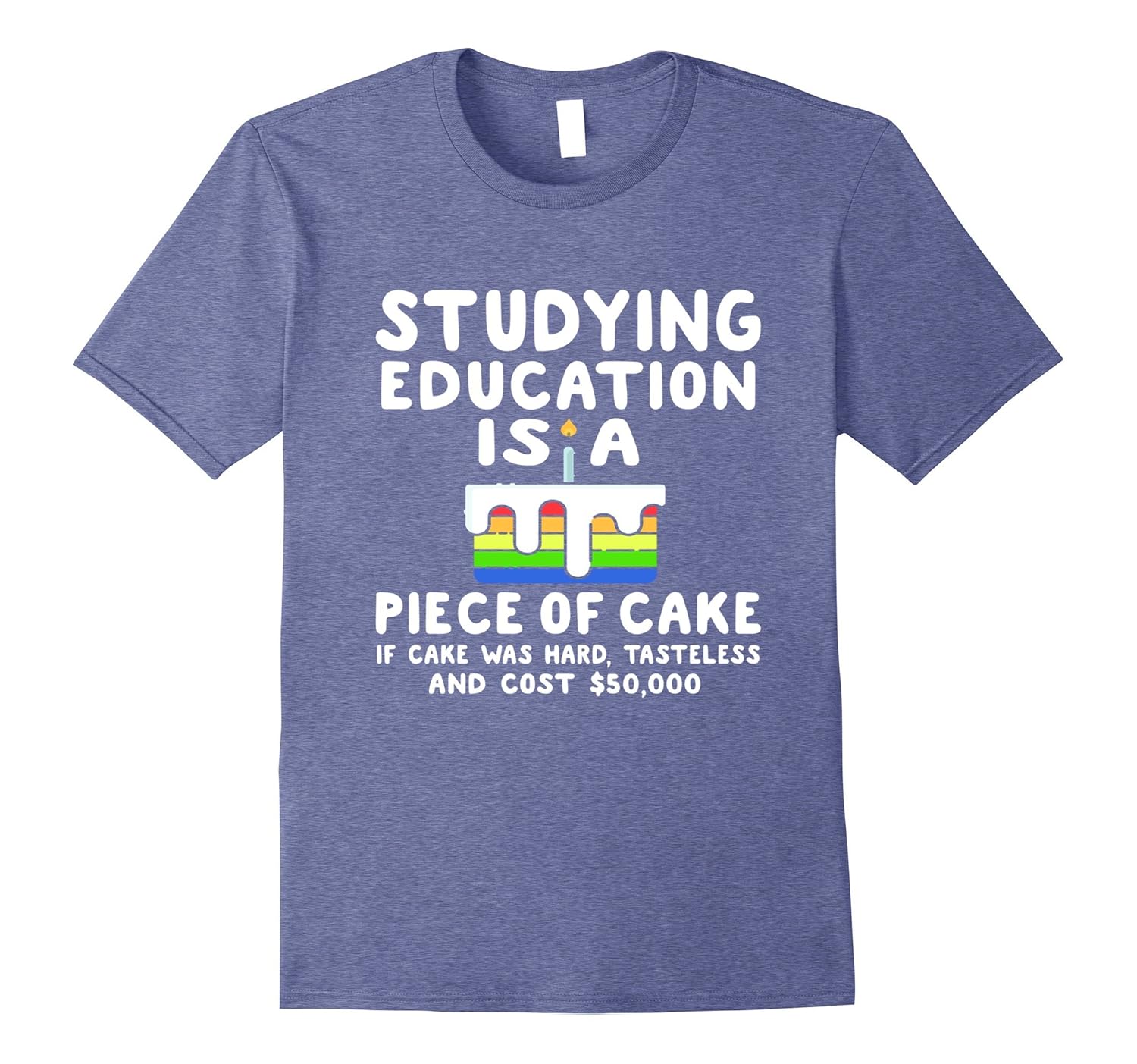 Solid colors: 100% Cotton; Heather Grey: 90% Cotton, 10% Polyester; All Other Heathers: 65% Cotton, 35% Polyester, Imported, Machine wash cold with like colors, dry low heat, Studying Education is a Piece of Cake – This T-shirt makes a great gift for a son or daughter studying as a Education Major. Your Future Educator and Teacher will love this funny present as a great gift for College or University student on graduation day. This shirt is a perfect, hilarious gift for Christmas, Birthday, Graduation, or any other holiday. A great, unique gift idea for friends and family this holiday season. Lightweight, Classic fit, Double-needle sleeve and bottom hem