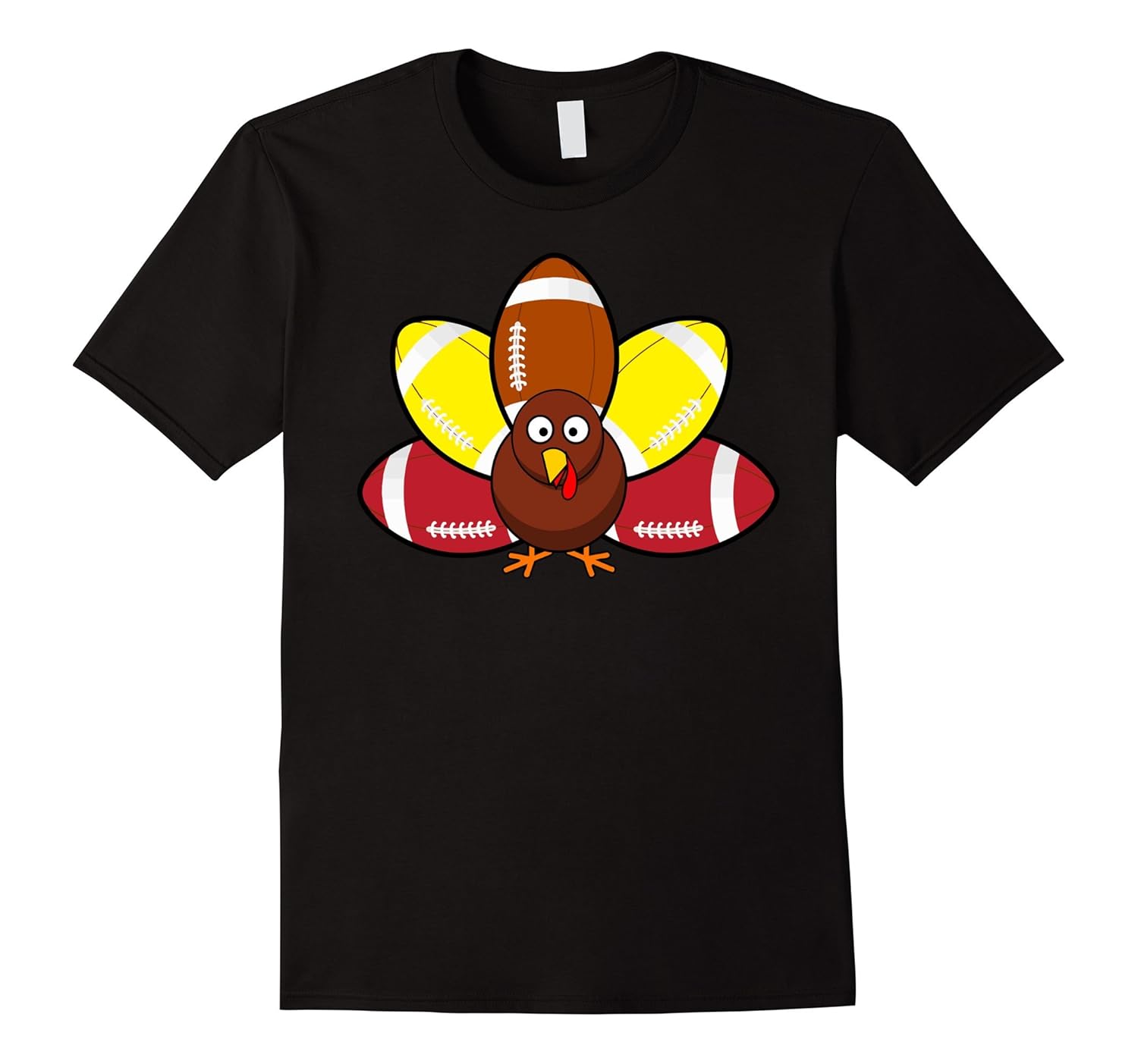 Solid colors: 100% Cotton; Heather Grey: 90% Cotton, 10% Polyester; All Other Heathers: 65% Cotton, 35% Polyester, Imported, Machine wash cold with like colors, dry low heat, Turkey and Football T-Shirt, thanksgiving dinner costume, thanksgiving day shirts, turkey costume, This is a funny idea gift for Thanksgiving Day. Get great shirt for you and people of your family. This funny adults and kids shirt is sure to be a hit whether it is for parties, family events or everyday occasions, Lightweight, Classic fit, Double-needle sleeve and bottom hem