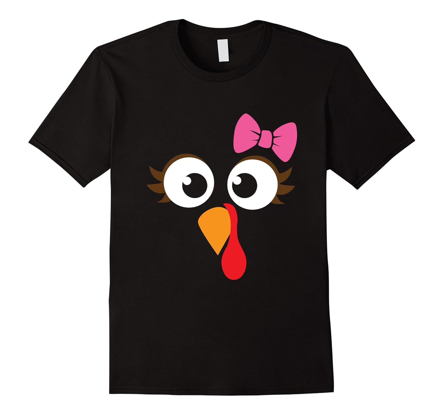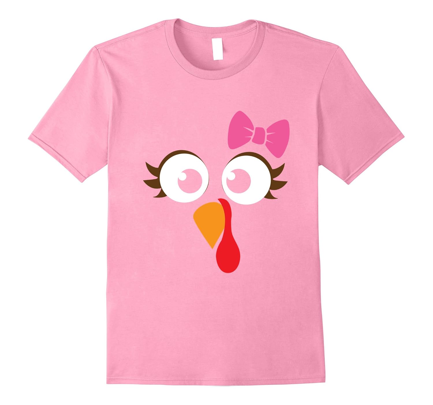 Turkey Face Girl Pink Bow T Shirt | Kids Thanksgiving Gift-ANZ