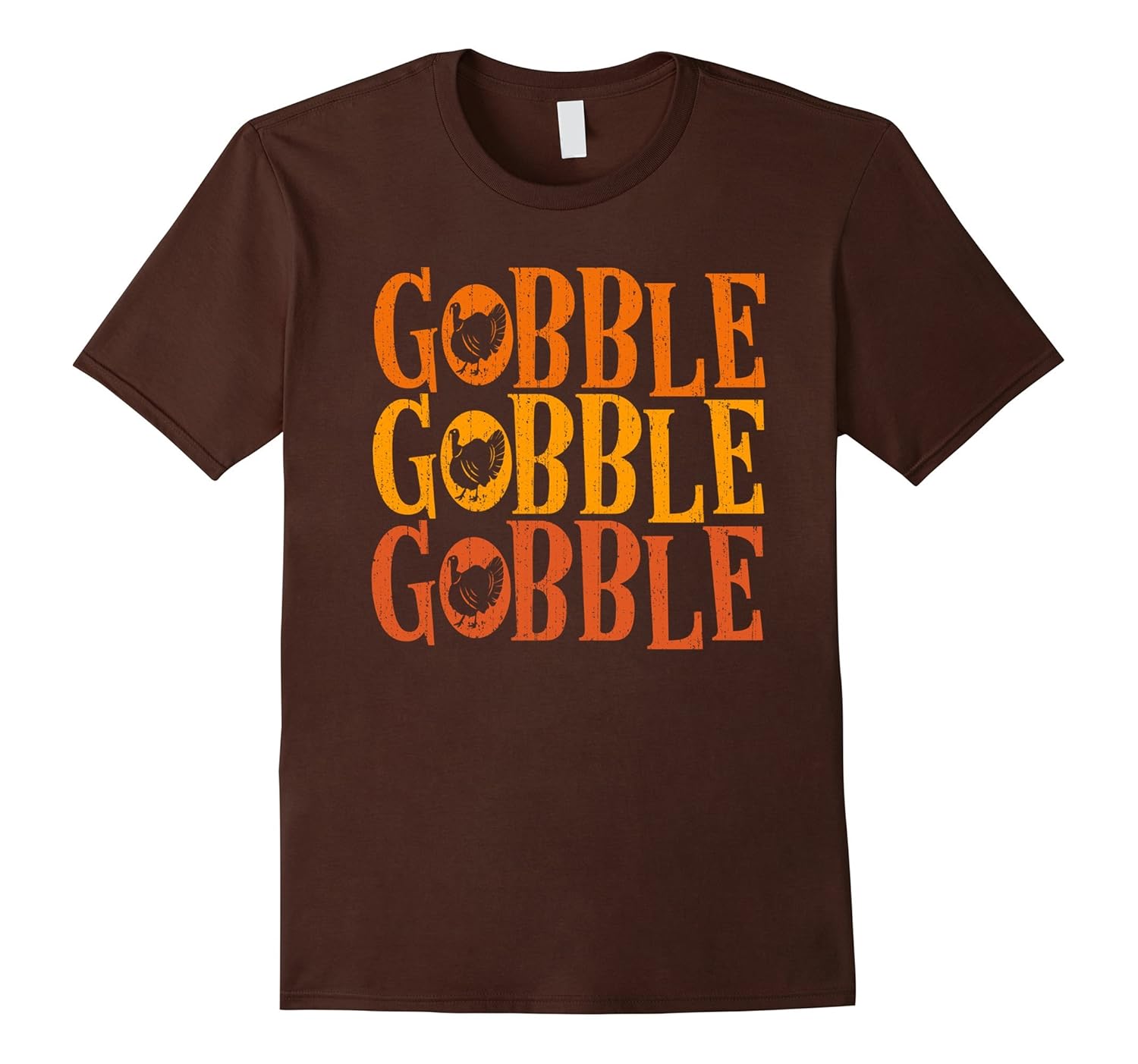 Solid colors: 100% Cotton; Heather Grey: 90% Cotton, 10% Polyester; All Other Heathers: 65% Cotton, 35% Polyester, Imported, Machine wash cold with like colors, dry low heat, Gobble Gobble Gobble tshirt. Hilarious turkey talk design in warm Autumn colors – distressed graphic for the classic vintage look, The perfect shirt for the Thanksgiving dinner family feast or anytime you want to display a little seasonal turkey humor, Lightweight, Classic fit, Double-needle sleeve and bottom hem