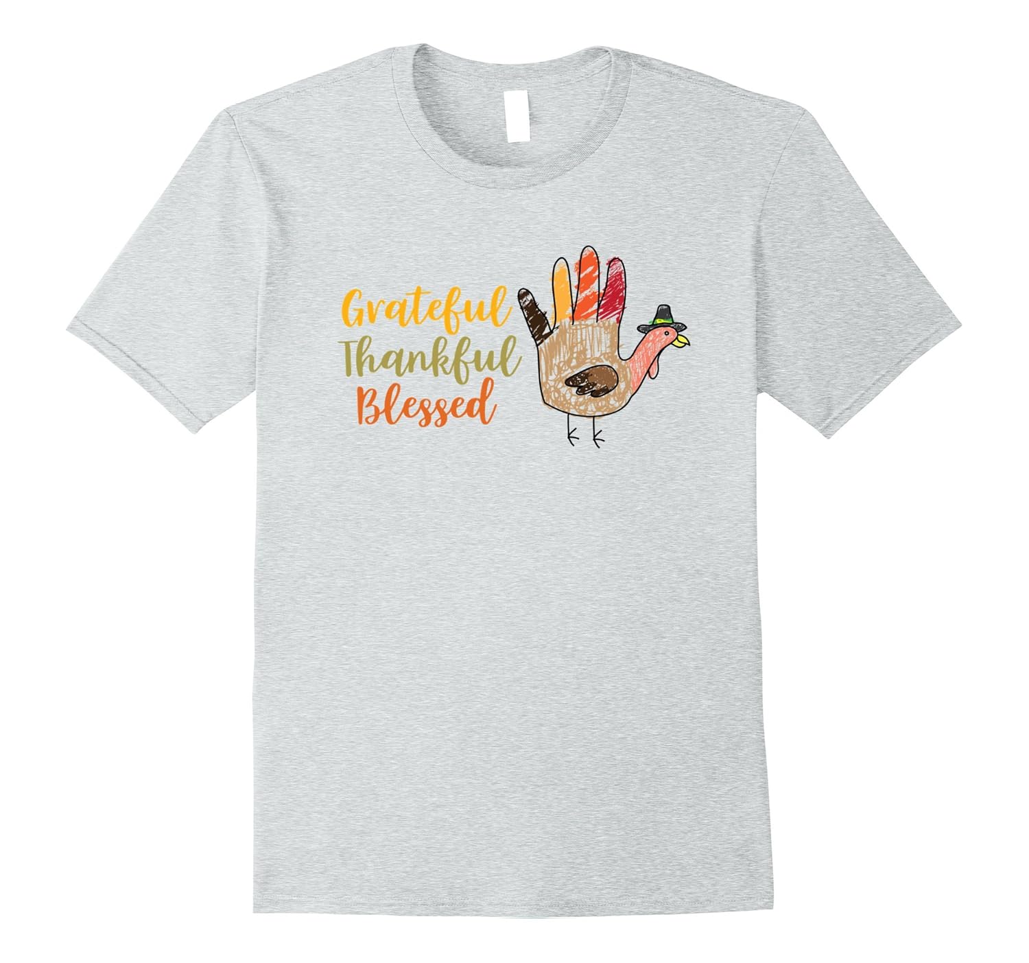 Turkey Hand Thanksgiving Grateful Thankful Blessed T-shirt-ANZ