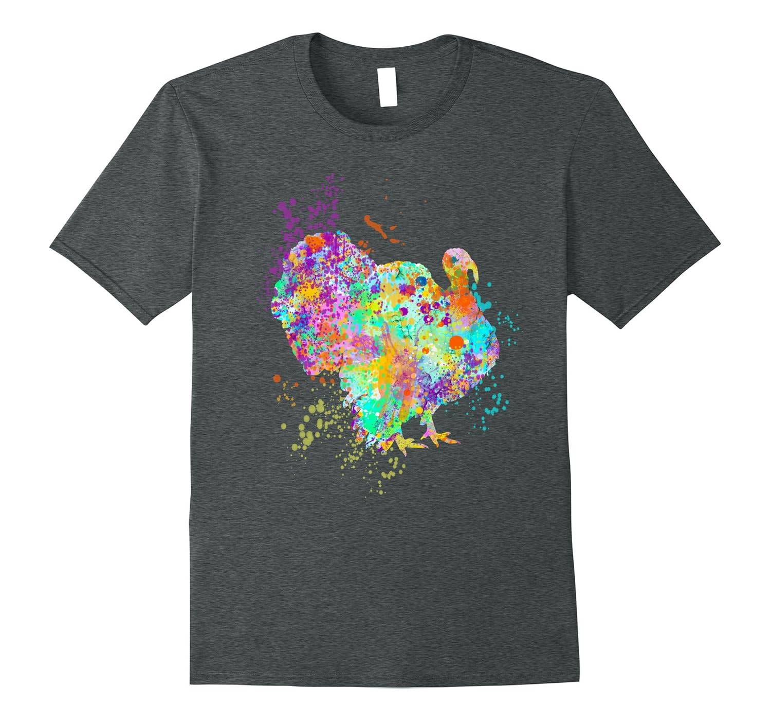 Solid colors: 100% Cotton; Heather Grey: 90% Cotton, 10% Polyester; All Other Heathers: 65% Cotton, 35% Polyester, Imported, Machine wash cold with like colors, dry low heat, Thanksgiving Holiday Graphic Paint Splatter Turkey T-Shirt, Love Turkeys, Graphic Art Tee Shirt, Lightweight, Classic fit, Double-needle sleeve and bottom hem