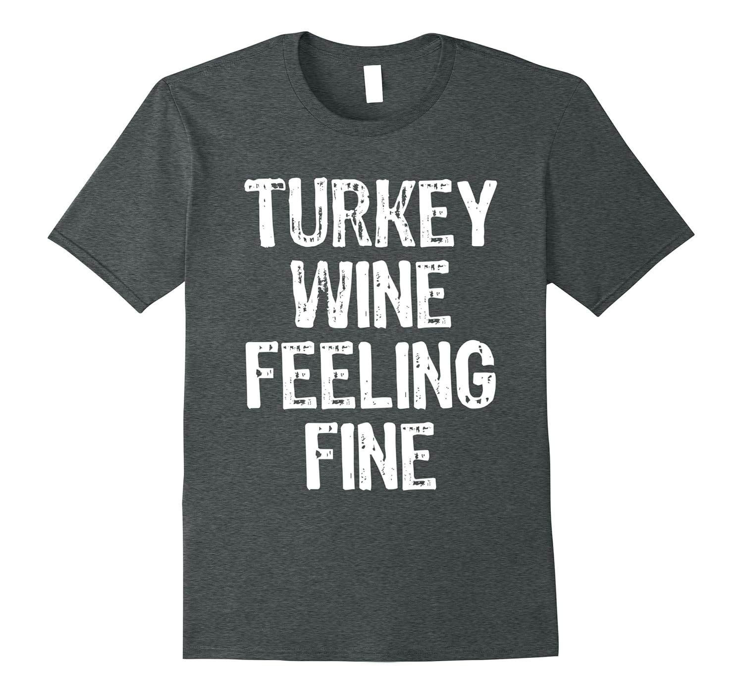 Solid colors: 100% Cotton; Heather Grey: 90% Cotton, 10% Polyester; All Other Heathers: 65% Cotton, 35% Polyester, Imported, Machine wash cold with like colors, dry low heat, turkey wine feeling fine thanksgiving day fall season family holiday dinner party autumn food eat eating drink drinking alcohol, quote textual saying cool gift ideas joke funny humor sarcastic, Lightweight, Classic fit, Double-needle sleeve and bottom hem