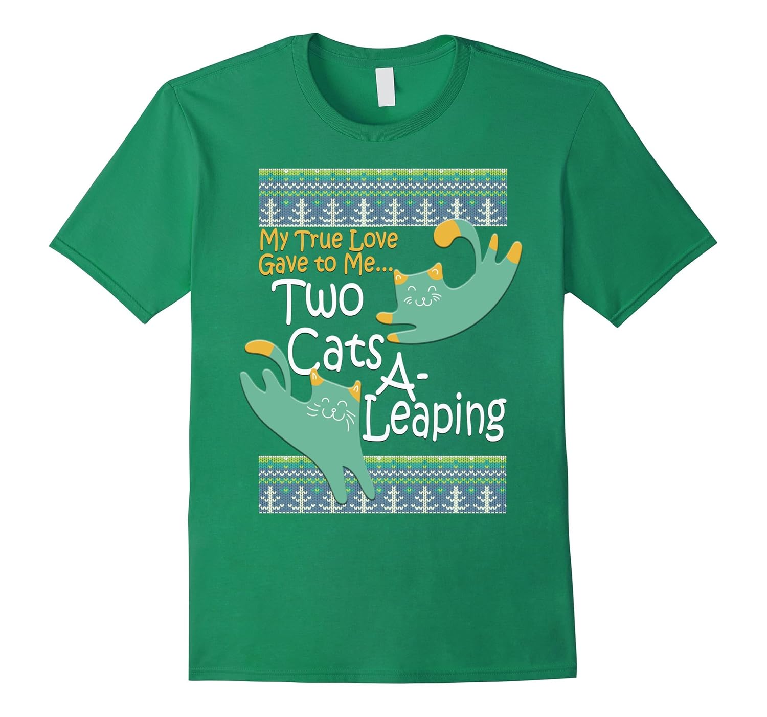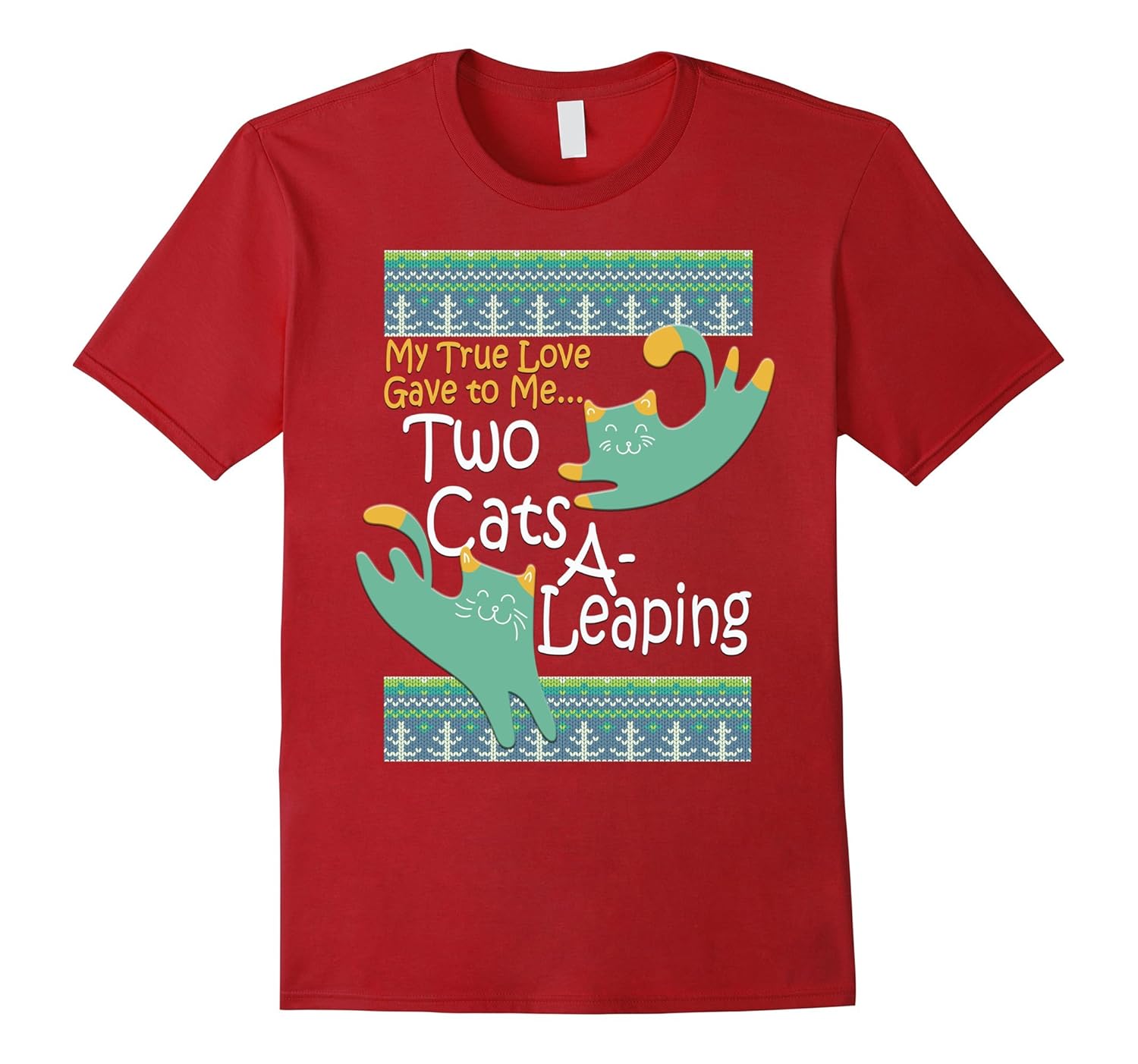 Two Cats A-Leaping Funny Ugly Christmas T-shirt-ANZ
