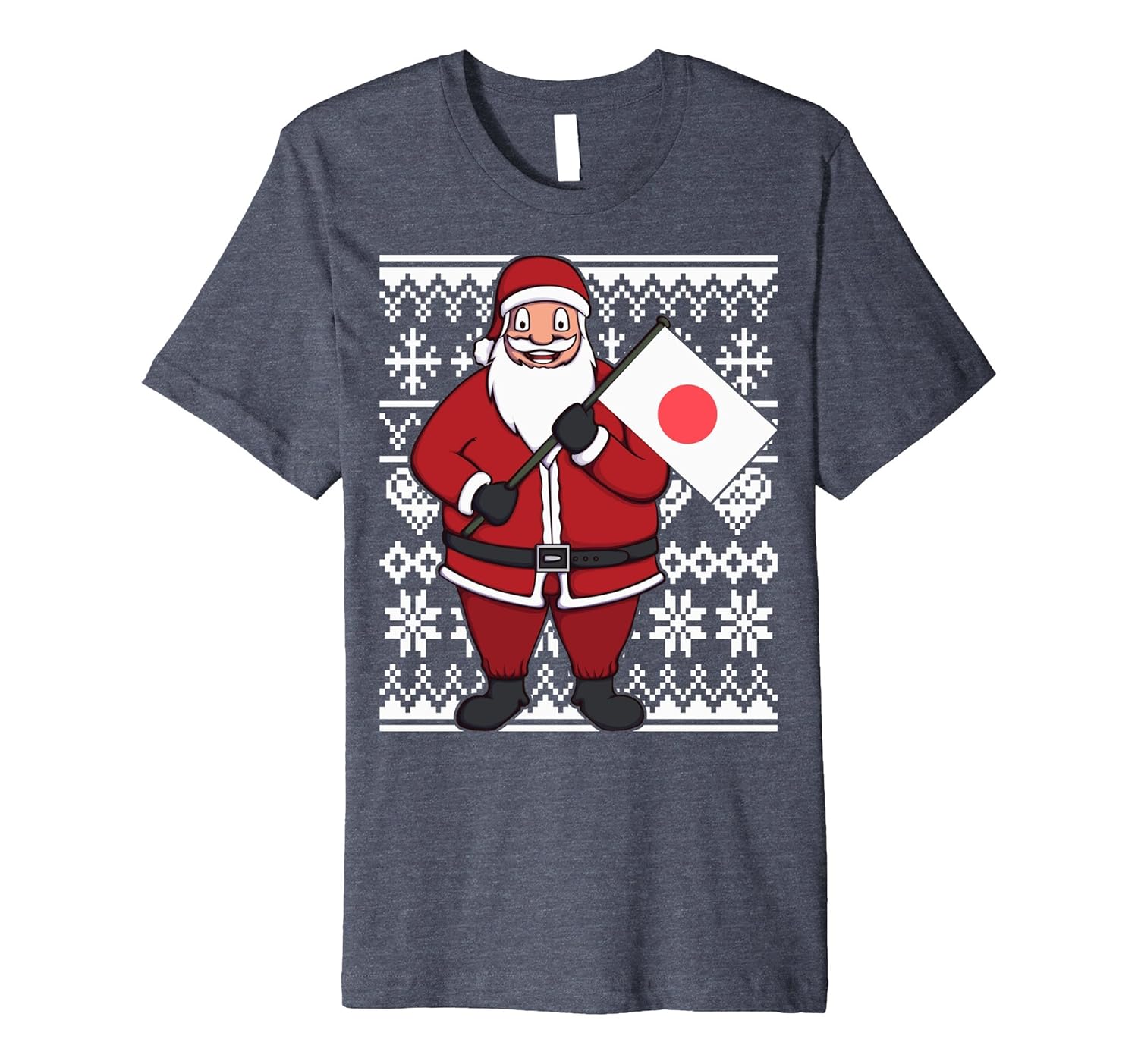 Solid colors: 100% Cotton; Heather Grey: 90% Cotton, 10% Polyester; All Other Heathers: 58% Cotton, 42% Polyester; Imported; Machine wash cold with like colors, dry low heat; Japanese colors and Japanese themed Christmas tee with a proud Santa holding the flag of Japan; Fit: Slim (consider ordering a larger size for a looser fit); Ugly Christmas Japan t-shirt, perfect gift for every Japanese and funny holiday gift for Japan lovers; This premium t-shirt is made of lightweight fine jersey fabric