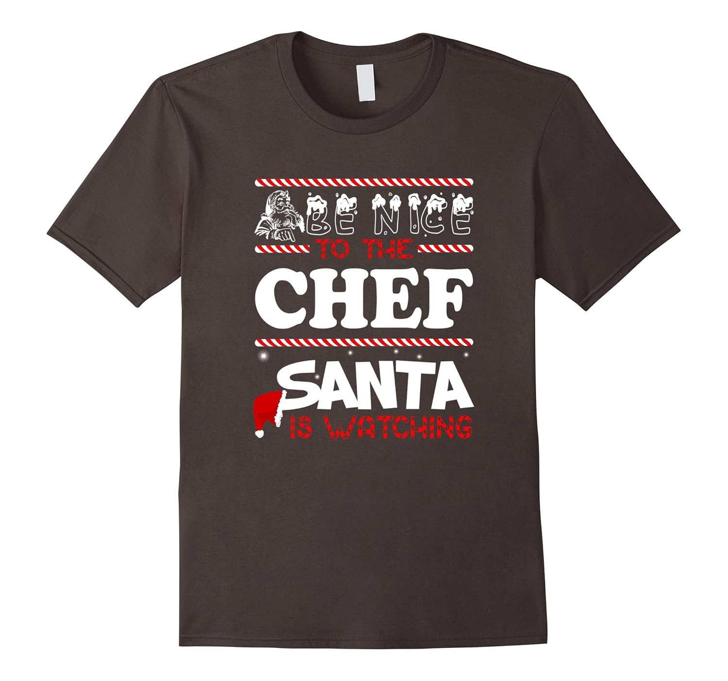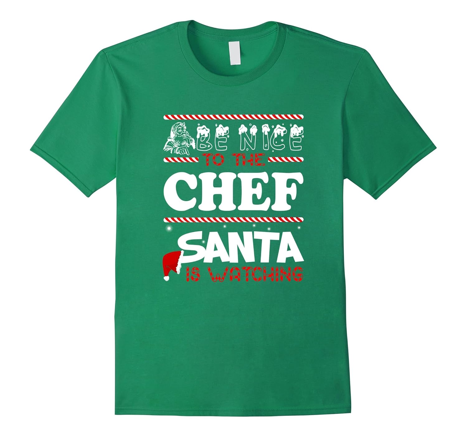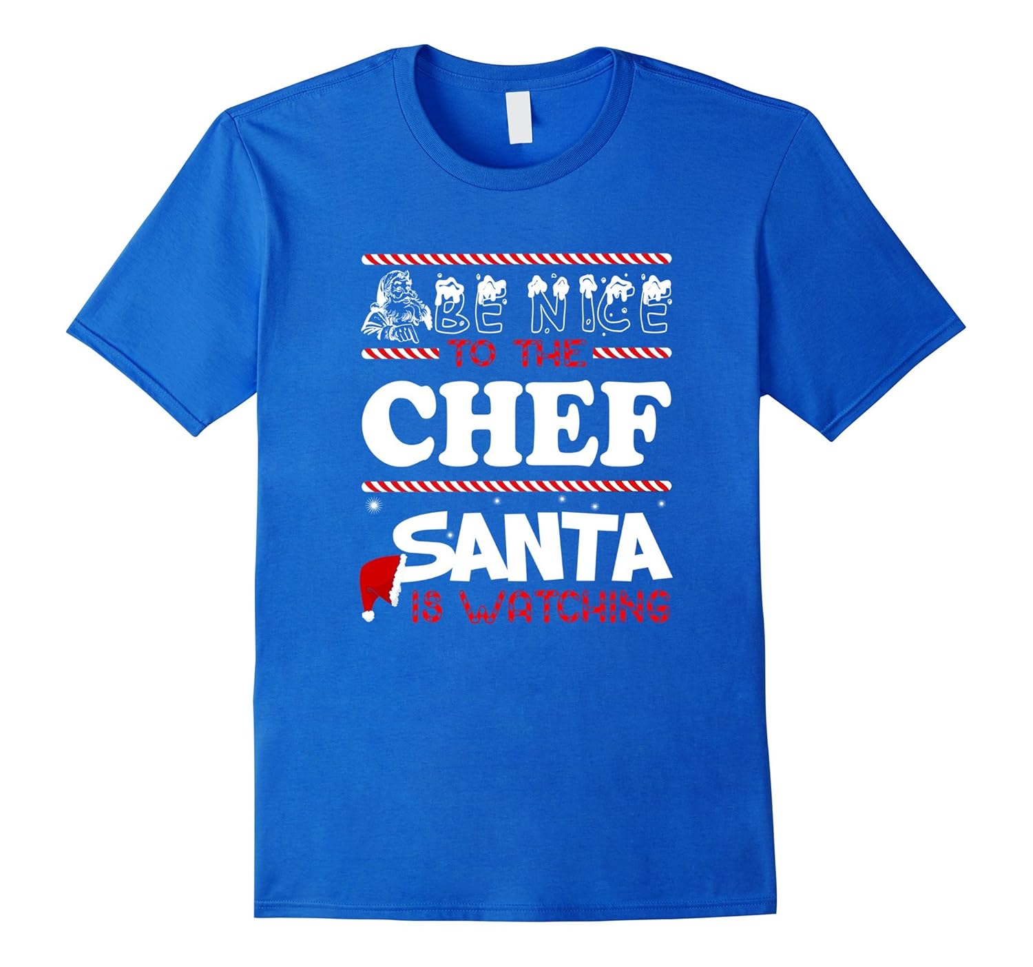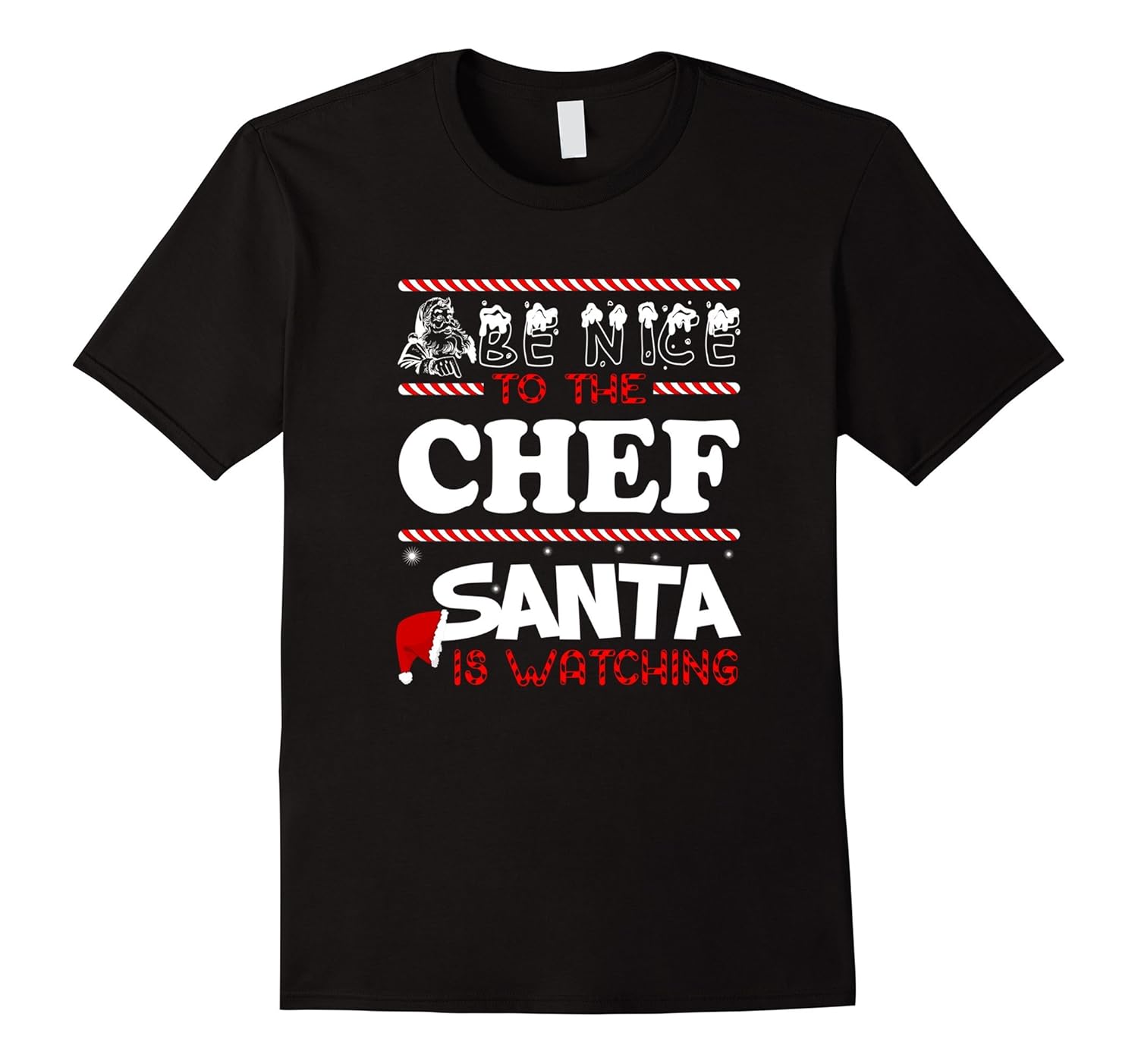 Solid colors: 100% Cotton; Heather Grey: 90% Cotton, 10% Polyester; All Other Heathers: 65% Cotton, 35% Polyester; Imported; Machine wash cold with like colors, dry low heat; Ugly Christmas Sweater Be Nice To The Chef Santa Is Watching Shirt, Order early so it can arrive in time for christmas and perfect Gift Xmas; Lightweight, Classic fit, Double-needle sleeve and bottom hem