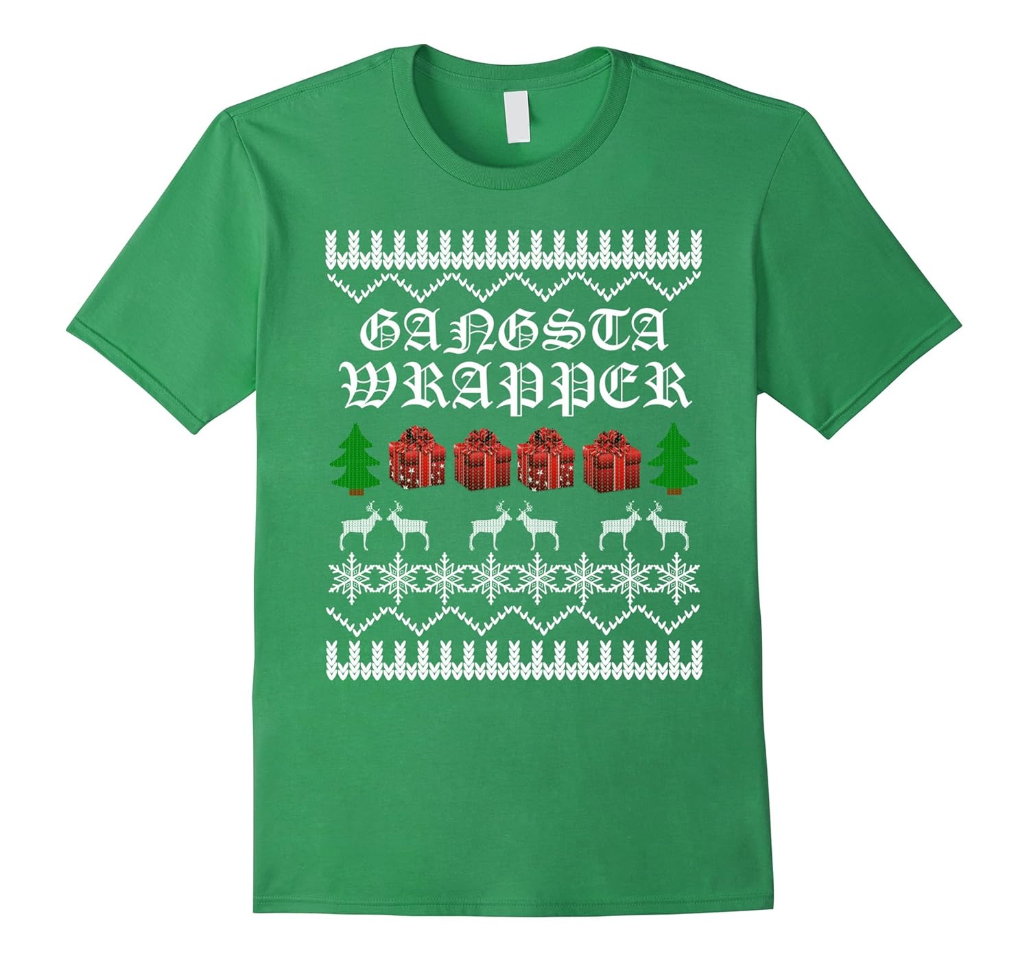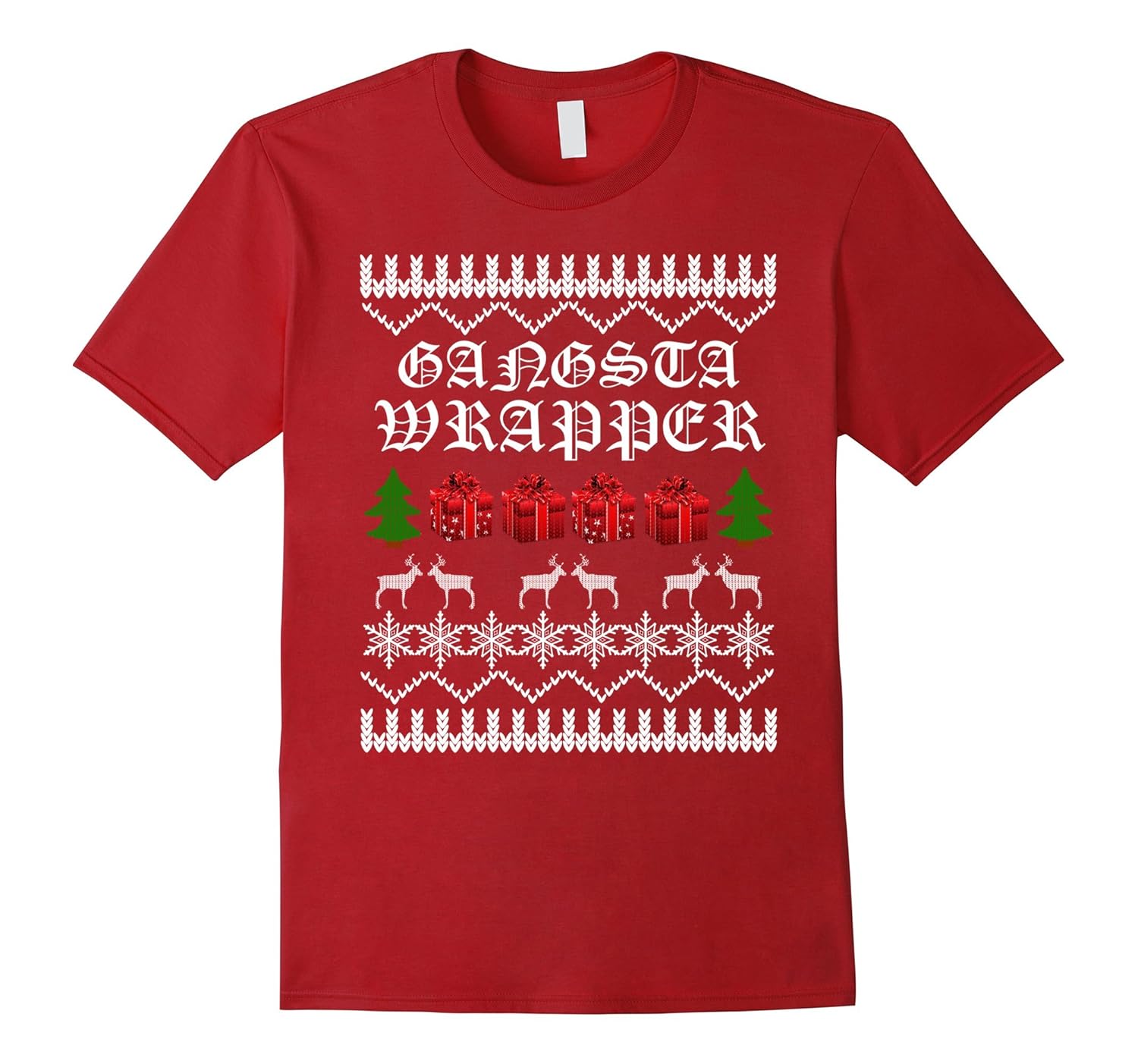 Solid colors: 100% Cotton; Heather Grey: 90% Cotton, 10% Polyester; All Other Heathers: 65% Cotton, 35% Polyester; Imported; Machine wash cold with like colors, dry low heat; UGLY CHRISTMAS SWEATER SHIRT Gangsta Wrapper Funny Holiday. Awesome, fun, cool tee shirt for anyone who loves Christmas such as mom, dad, brother, sister, son, daughter, husband, wife, grandma, grandpa, grandmother, granddad.; Makes a great Christmas gift, Birthday present, Anniversary, Retirement, Graduation gift to wear to Christmas eve party, Holiday Party, School, December Winter vacation, traveling to see family, singing carols around the tree, reading Santa reindeer story.; Lightweight, Classic fit, Double-needle sleeve and bottom hem