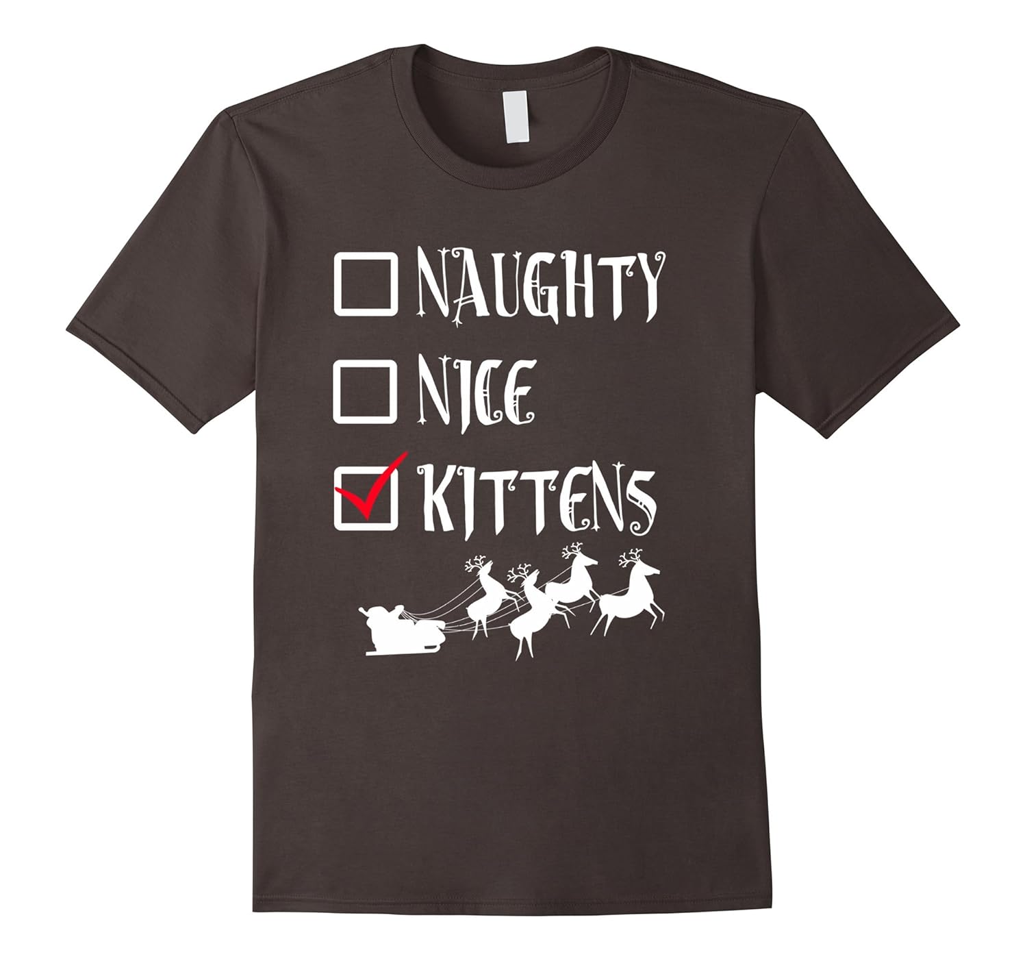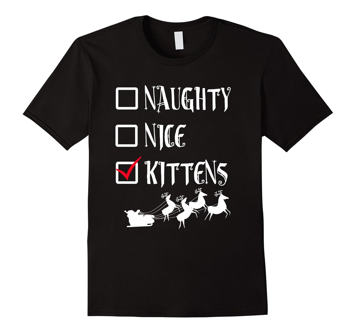 Solid colors: 100% Cotton; Heather Grey: 90% Cotton, 10% Polyester; All Other Heathers: 65% Cotton, 35% Polyester; Imported; Machine wash cold with like colors, dry low heat; UGLY CHRISTMAS SWEATER SHIRT Naughty Nice KITTENS Funny Tee. Awesome, fun, cool tee shirt for anyone who loves Christmas such as mom, dad, brother, sister, son, daughter, husband, wife, grandma, grandpa, grandmother, granddad.; Makes a great Christmas gift, Birthday present, Anniversary, Retirement, Graduation gift to wear to Christmas eve party, Holiday Party, School, December Winter vacation, traveling to see family, singing carols around the tree, reading Santa reindeer story; Lightweight, Classic fit, Double-needle sleeve and bottom hem