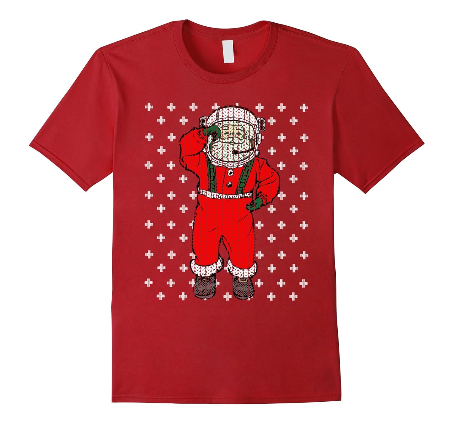 Solid colors: 100% Cotton; Heather Grey: 90% Cotton, 10% Polyester; All Other Heathers: 65% Cotton, 35% Polyester; Imported; Machine wash cold with like colors, dry low heat; UGLY CHRISTMAS SWEATER SHIRT Santa Outer Space Astronaut Fun. Awesome, fun, cool tee shirt for anyone who loves Christmas such as mom, dad, brother, sister, son, daughter, husband, wife, grandma, grandpa, grandmother, granddad.; Makes a great Christmas gift, Birthday present, Anniversary, Retirement, Graduation gift to wear to Christmas eve party, Holiday Party, School, December Winter vacation, traveling to see family, singing carols around the tree, reading Santa reindeer story; Lightweight, Classic fit, Double-needle sleeve and bottom hem