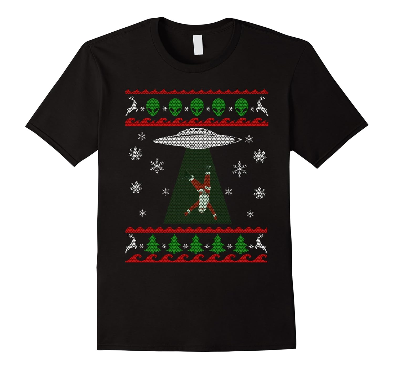 Ugly Christmas Sweater Style Alien Abduction Santa T-Shirt-ANZ