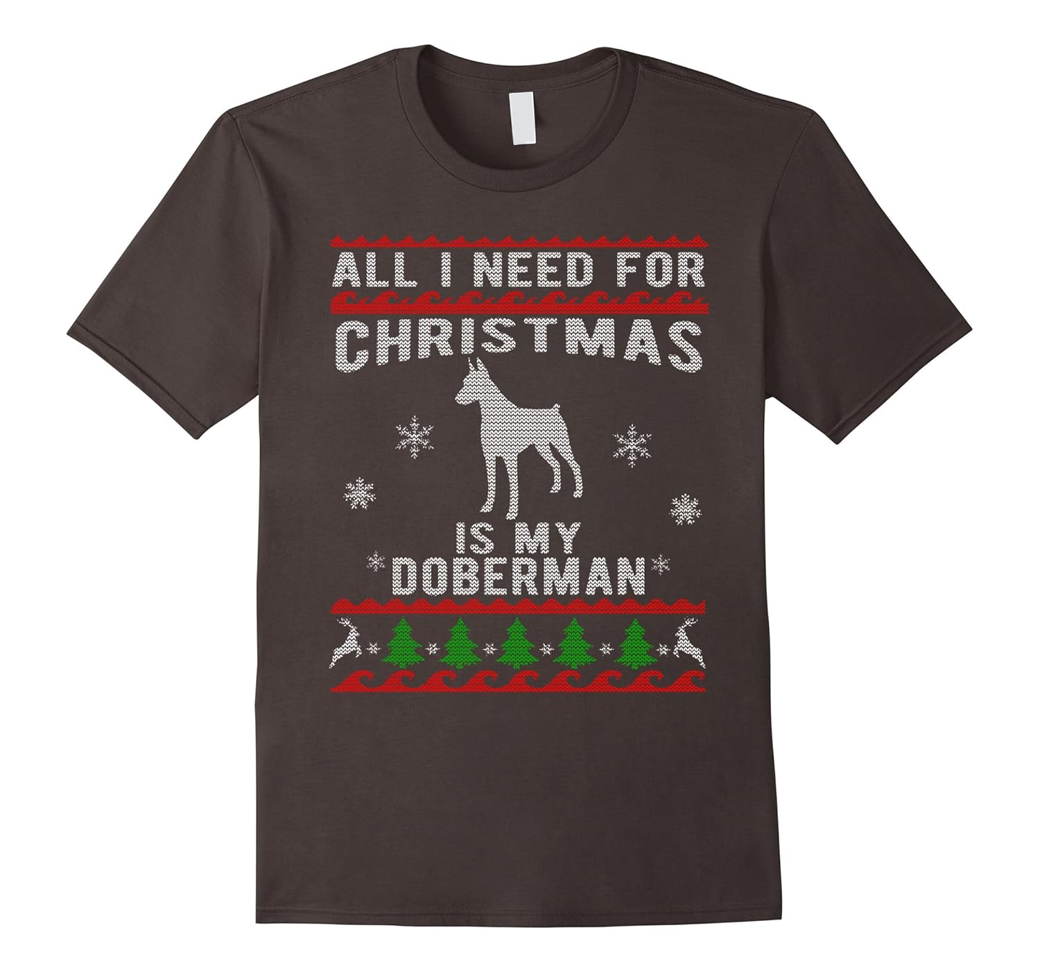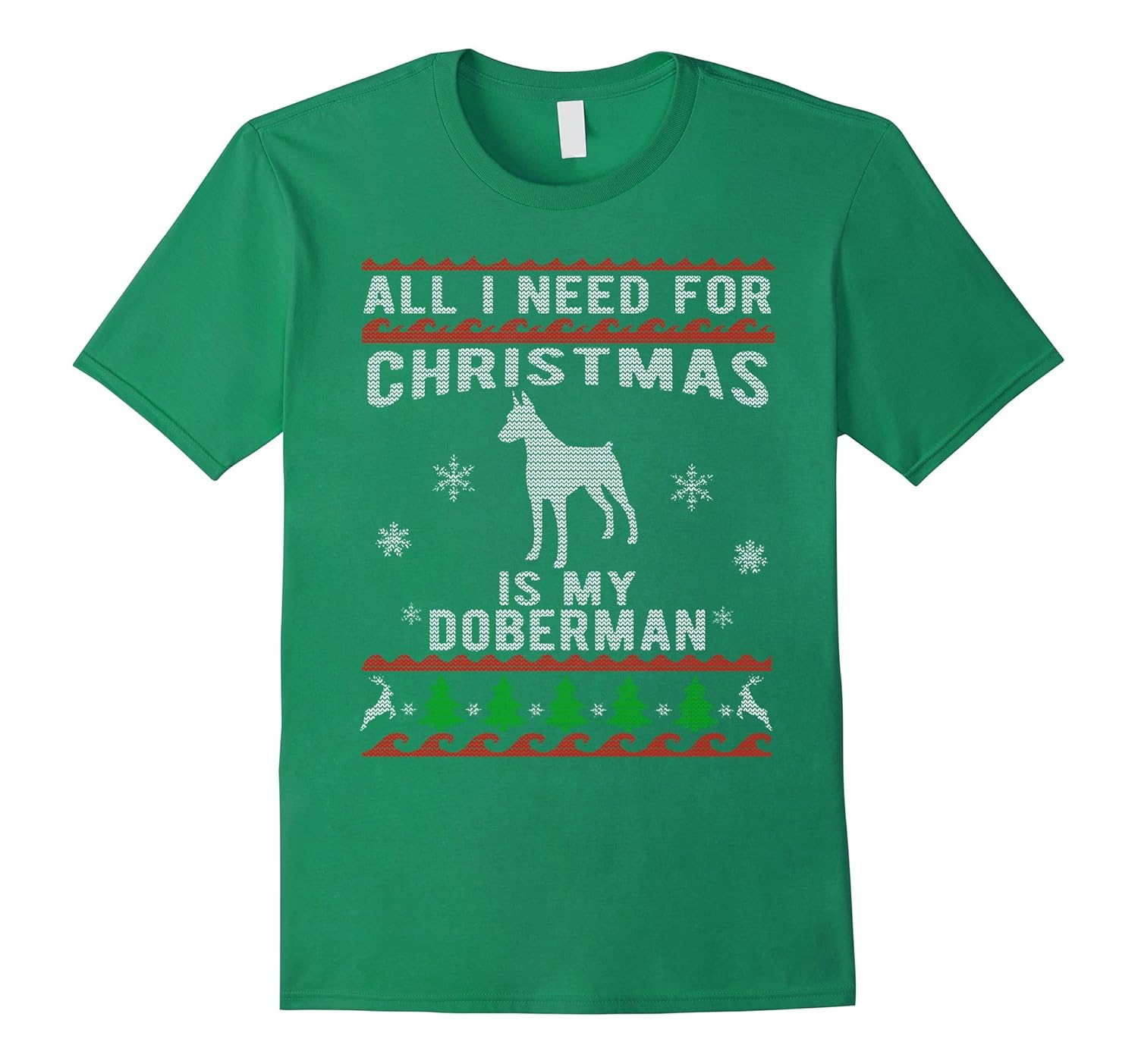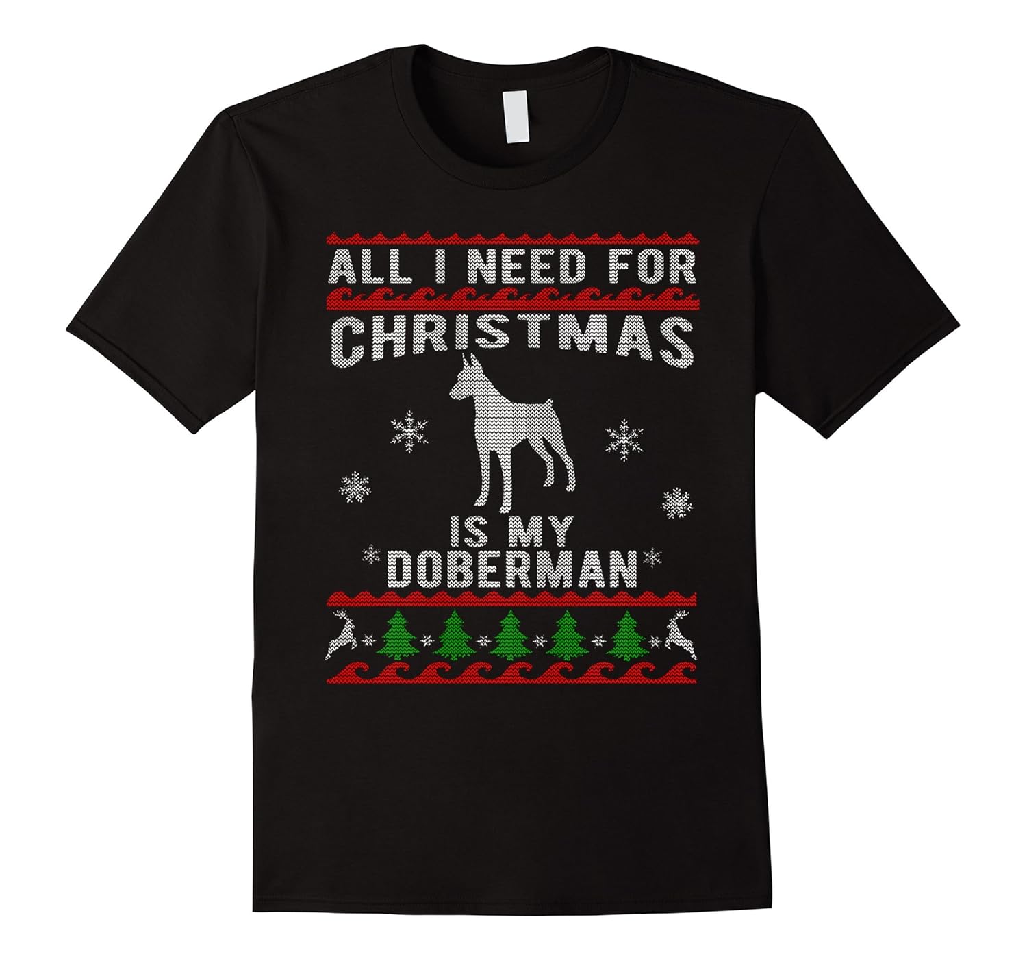 Ugly Christmas Sweater Style Doberman Dog Funny T-Shirt-ANZ