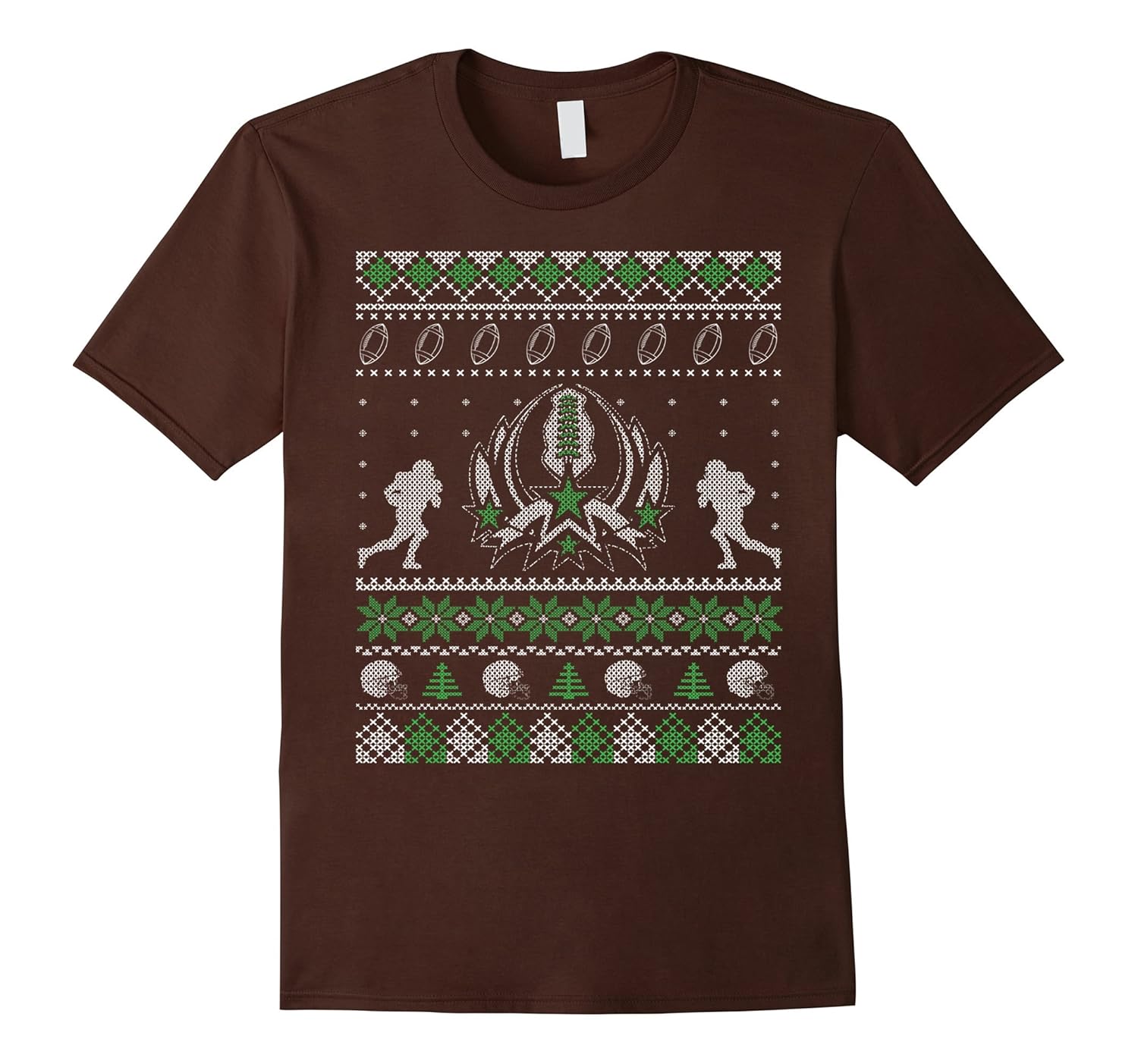 Solid colors: 100% Cotton; Heather Grey: 90% Cotton, 10% Polyester; All Other Heathers: 65% Cotton, 35% Polyester; Imported; Machine wash cold with like colors, dry low heat; Football Themed Ugly Sweater Style T-Shirt College or Pro; Score a touchdown wearing this or score an extra point giving this as a gift; Lightweight, Classic fit, Double-needle sleeve and bottom hem