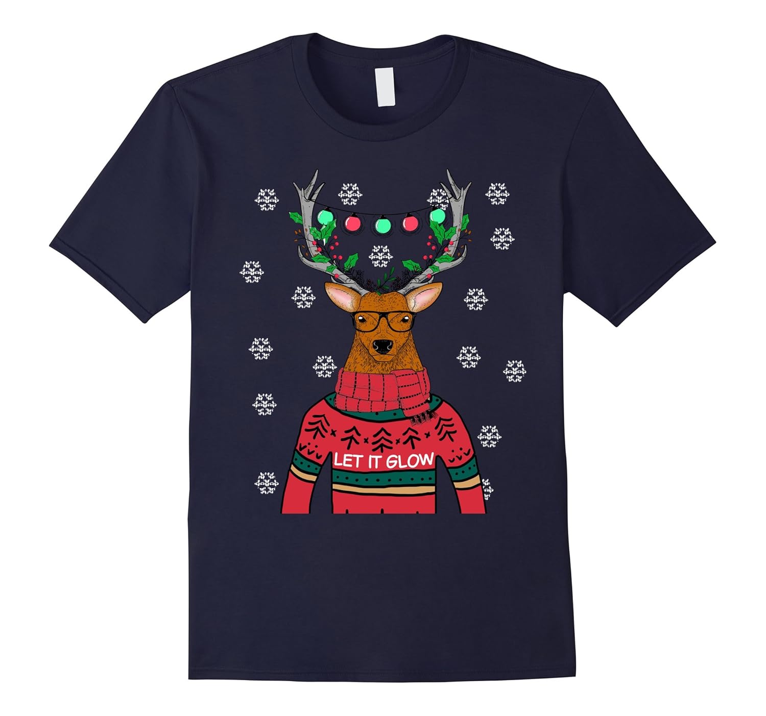 Ugly Christmas Sweater Style Let It Glow Reindeer T-Shirt-ANZ