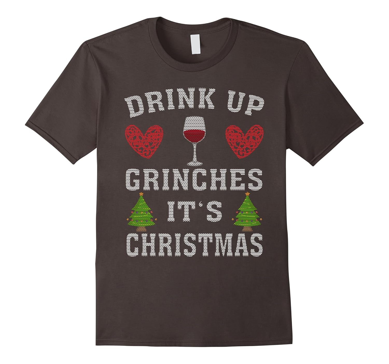 Solid colors: 100% Cotton; Heather Grey: 90% Cotton, 10% Polyester; All Other Heathers: 65% Cotton, 35% Polyester, Imported, Machine wash cold with like colors, dry low heat, The text saying “Drink up grinches – It”s Christmas” showing two red hearts, a glas of wine and xmas trees with colorful balls is the perfect gift for Xmas this year. Have drink, be with your family and enjoy this beautiful ugly knitted sweater design. Celebrate with this tee and enjoy sticking out from the normal crowd, Lightweight, Classic fit, Double-needle sleeve and bottom hem