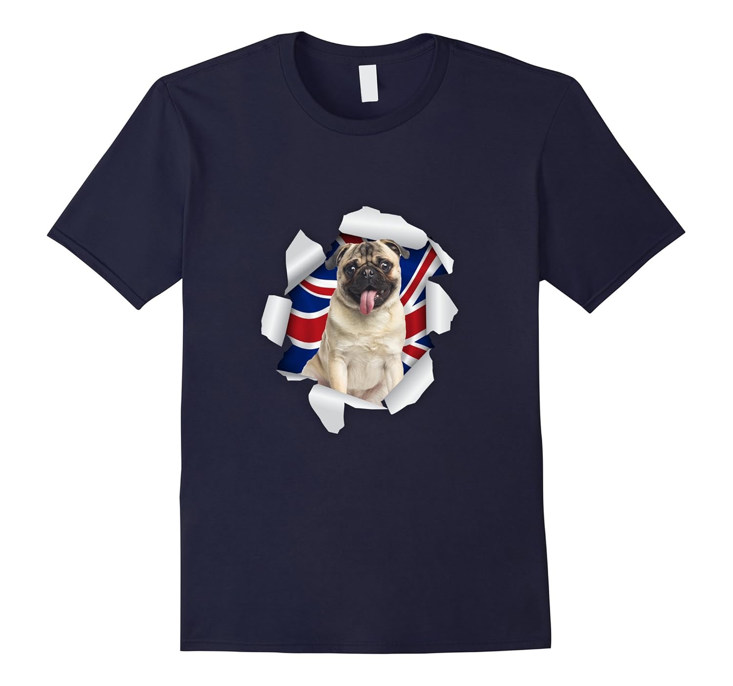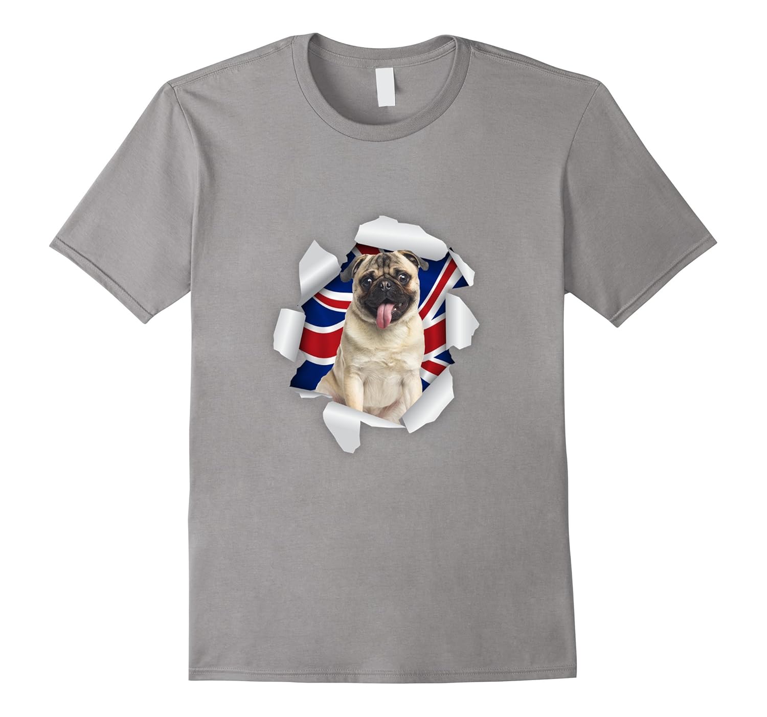 Solid colors: 100% Cotton; Heather Grey: 90% Cotton, 10% Polyester; All Other Heathers: 65% Cotton, 35% Polyester; Imported; Machine wash cold with like colors, dry low heat; UK Pug Dog Union Jack Flag British Pet Animal T-Shirt; Are you a funny guy or girl? Does your mother or Father think youre a little bit crazy for the cool funny tees you wear? Well grab this cool tee today and show all your friends and classmates just how funny you are.Makes a great gift for any pug lover; Lightweight, Classic fit, Double-needle sleeve and bottom hem