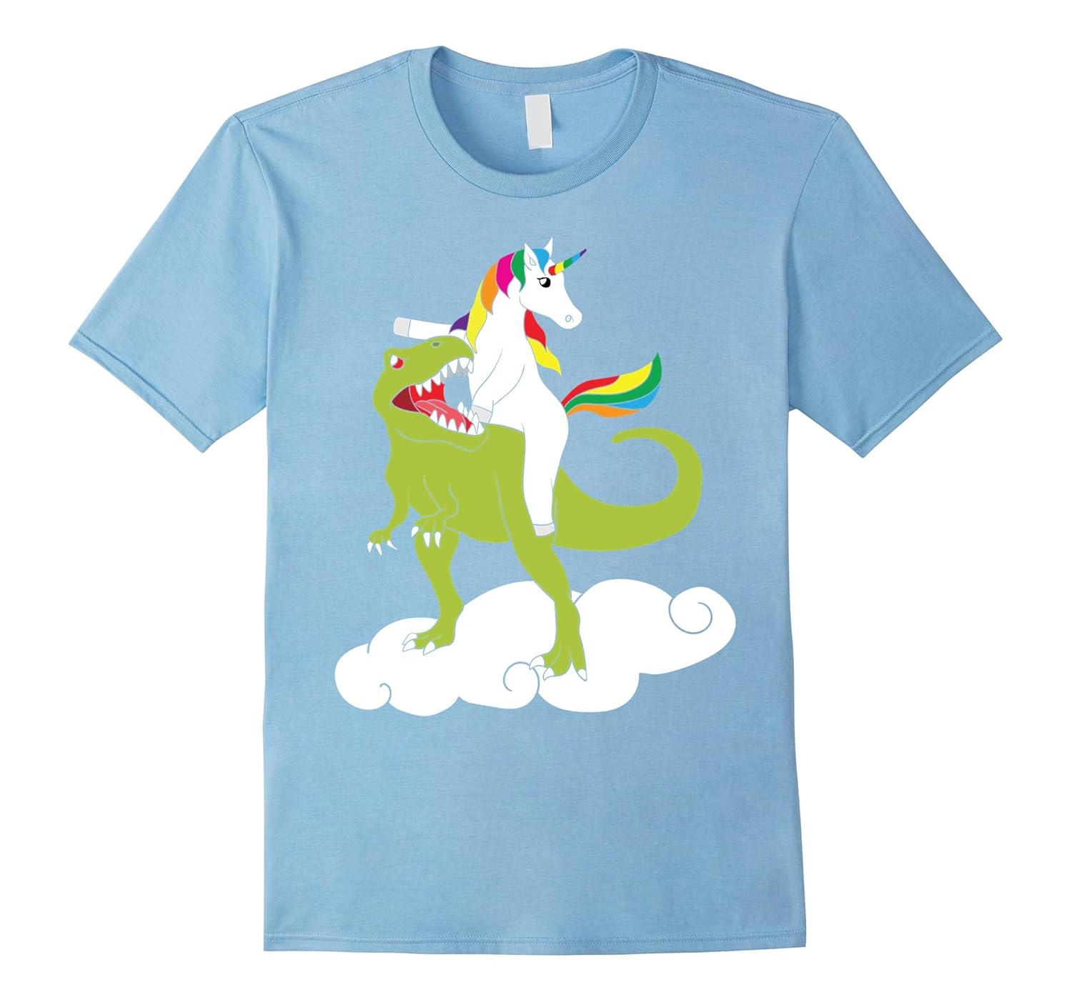 Solid colors: 100% Cotton; Heather Grey: 90% Cotton, 10% Polyester; All Other Heathers: 65% Cotton, 35% Polyester, Imported, Machine wash cold with like colors, dry low heat, If you or your children love unicorns, dinosaur, glitter and rainbows you deserve this funny Unicorn riding a T-Rex T-Shirt. Ride your way into a magical land of adventure past the rainbow on your dabbing unicorn wearing this funny Dinosaur Unicorn Shirt. This cute Unicorn Shirt makes a great Christmas or birthday gift for boys, girls, kids, teens, women, men, partners, friends who love unicorns and funny jokes! Catch some smiles in school or at any party with this Dinosaur T-Rex with an Unicorn Tee. Lightweight, Classic fit, Double-needle sleeve and bottom hem