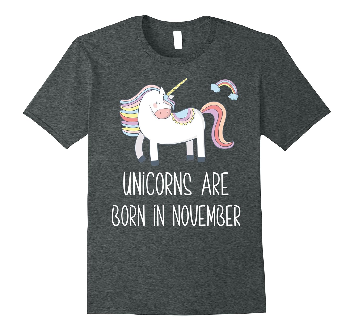 Solid colors: 100% Cotton; Heather Grey: 90% Cotton, 10% Polyester; All Other Heathers: 65% Cotton, 35% Polyester, Imported, Machine wash cold with like colors, dry low heat, This awesome and magical Unicorns Are Born In November shirt is a great gift for anyone who loves dancing unicorns! This cute, cartoon tee with a rainbow will make anyone laugh!, This fun, creative tee makes a perfect gift for unicorn lovers, women, kids, and girls! Perfect for a birthday party!, Lightweight, Classic fit, Double-needle sleeve and bottom hem