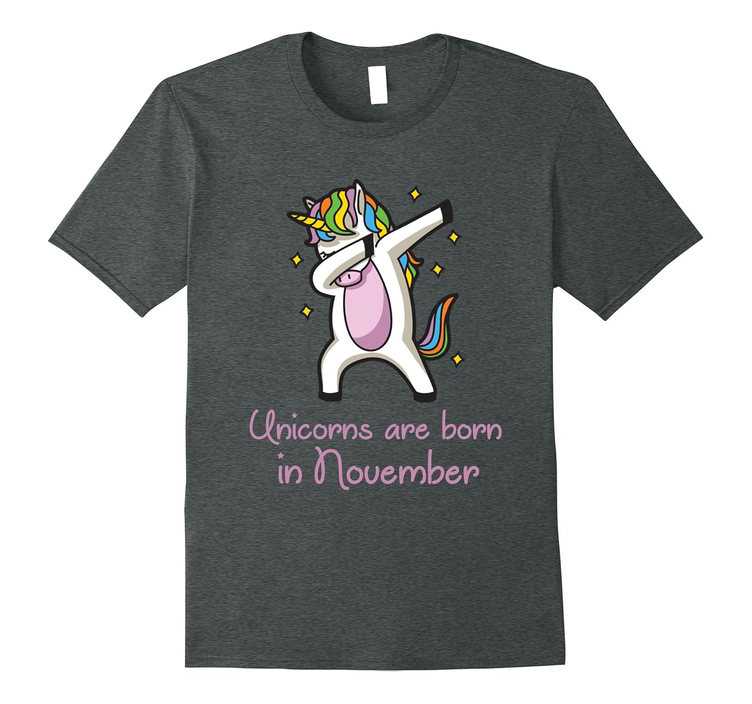 Solid colors: 100% Cotton; Heather Grey: 90% Cotton, 10% Polyester; All Other Heathers: 65% Cotton, 35% Polyester, Imported, Machine wash cold with like colors, dry low heat, Very cute “Unicorns are born in November” Dabbing Shirt for girls, boys and adults on their birthday. This funny and cute Unicorn Dabbing T-Shirt is the best gift for anyone who loves this fantasy fabulous animal. Lightweight, Classic fit, Double-needle sleeve and bottom hem