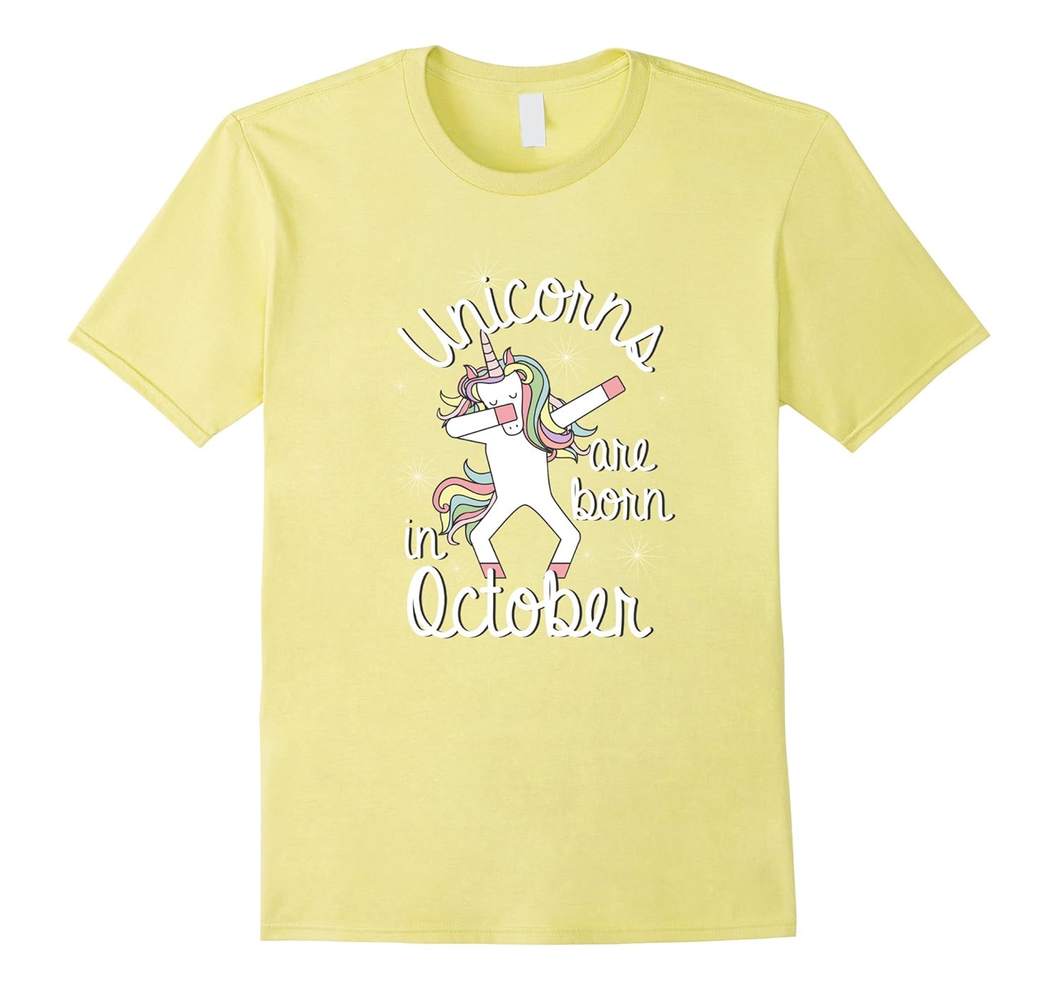 Solid colors: 100% Cotton; Heather Grey: 90% Cotton, 10% Polyester; All Other Heathers: 65% Cotton, 35% Polyester, Imported, Machine wash cold with like colors, dry low heat, Unicorns are born in October T-Shirt Tshirt Tee shirt! This Beautiful Magical Unicorn is hitting the Dab famous dance pose – deal with it! PERFECT Birthday Christmas gift for anyone who loves Magical Unicorn Gifts who always be you believe in yourself!, BEST EVER Magical Fabulous Dabbing Unicorn Dabs Tee is just what any little girl daughter granddaughter would love for a birthday Christmas gift! Add to your Unicorn birthday party shirt supplies decorations!, Lightweight, Classic fit, Double-needle sleeve and bottom hem