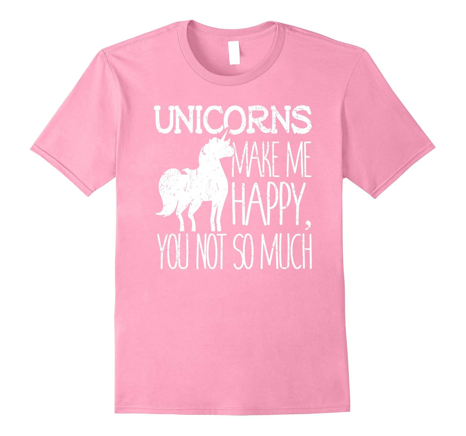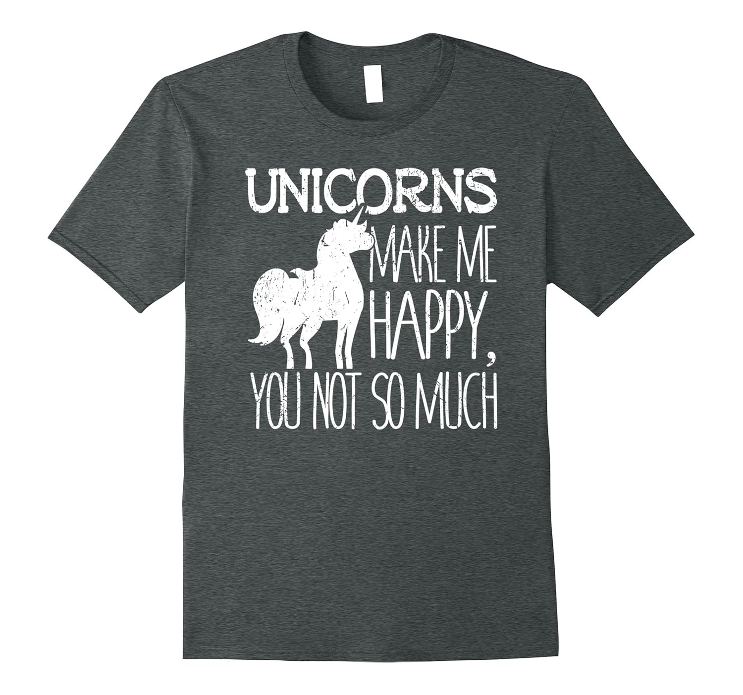 Solid colors: 100% Cotton; Heather Grey: 90% Cotton, 10% Polyester; All Other Heathers: 65% Cotton, 35% Polyester, Imported, Machine wash cold with like colors, dry low heat, Makes a great gift idea for anyone who loves Unicorns and thinks they are awesome. Great cute and funny gift for kids and adults! This Adorable Unicorn shirt is one of a kind! Great for Christmas, Birthdays or any other Holiday!, Unicorns Make Me Happy You Not So Much Lover Gift Apparel is designed and printed to be fitted. For a more loose fit, please order a size up. This colorful unicorn t-shirt will make you believe in magic. Magical Unicorns, is there anything better. Lightweight, Classic fit, Double-needle sleeve and bottom hem