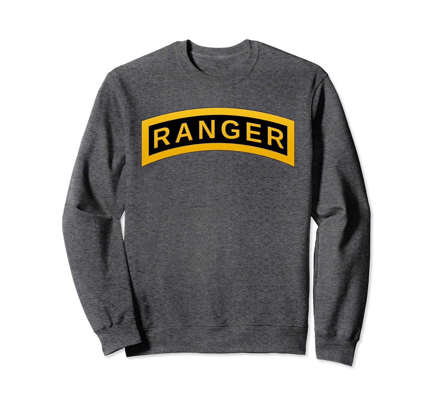 Solid colors: 80% Cotton, 20% Polyester; Heather Grey: 78% Cotton, 22% Poly; Dark Heather: 50% Cotton, 50% Polyester; Imported; Machine wash cold with like colors, dry low heat; United States US Army Ranger Tab Sweatshirt Shirt. Order a Size Up for a Looser Fit. United States Army Rangers are an elite military formation of the United States Army.; To see more Army Shirts and Stuff just click on the blue label Great US ARMY T-Shirts above the product name.; 8.5 oz, Classic fit, Twill-taped neck