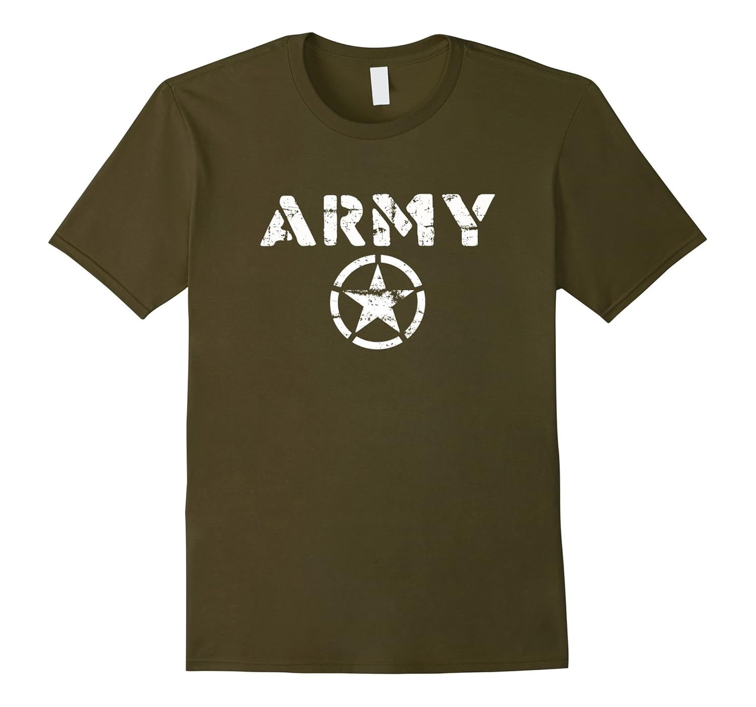 Solid colors: 100% Cotton; Heather Grey: 90% Cotton, 10% Polyester; All Other Heathers: 65% Cotton, 35% Polyester, Imported, Machine wash cold with like colors, dry low heat, Army Tee, Army T Shirt, Army Star, Armed Forces T-Shirt, Lightweight, Classic fit, Double-needle sleeve and bottom hem