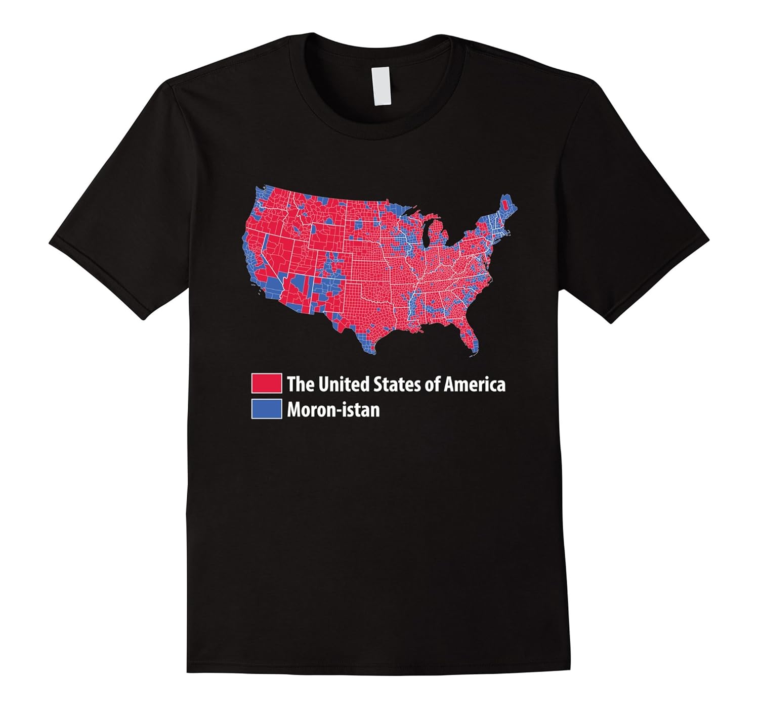 100% Cotton, Imported, Machine wash cold with like colors, dry low heat, The United States Of America Is Red t shirt, Moron-istan Is Blue t shirt, Red states and blue states Map, Red America vs Blue America tee, Red American and Blue Moron-istan, American Flag vector graphic, Election Map by County, Lightweight, Classic fit, Double-needle sleeve and bottom hem