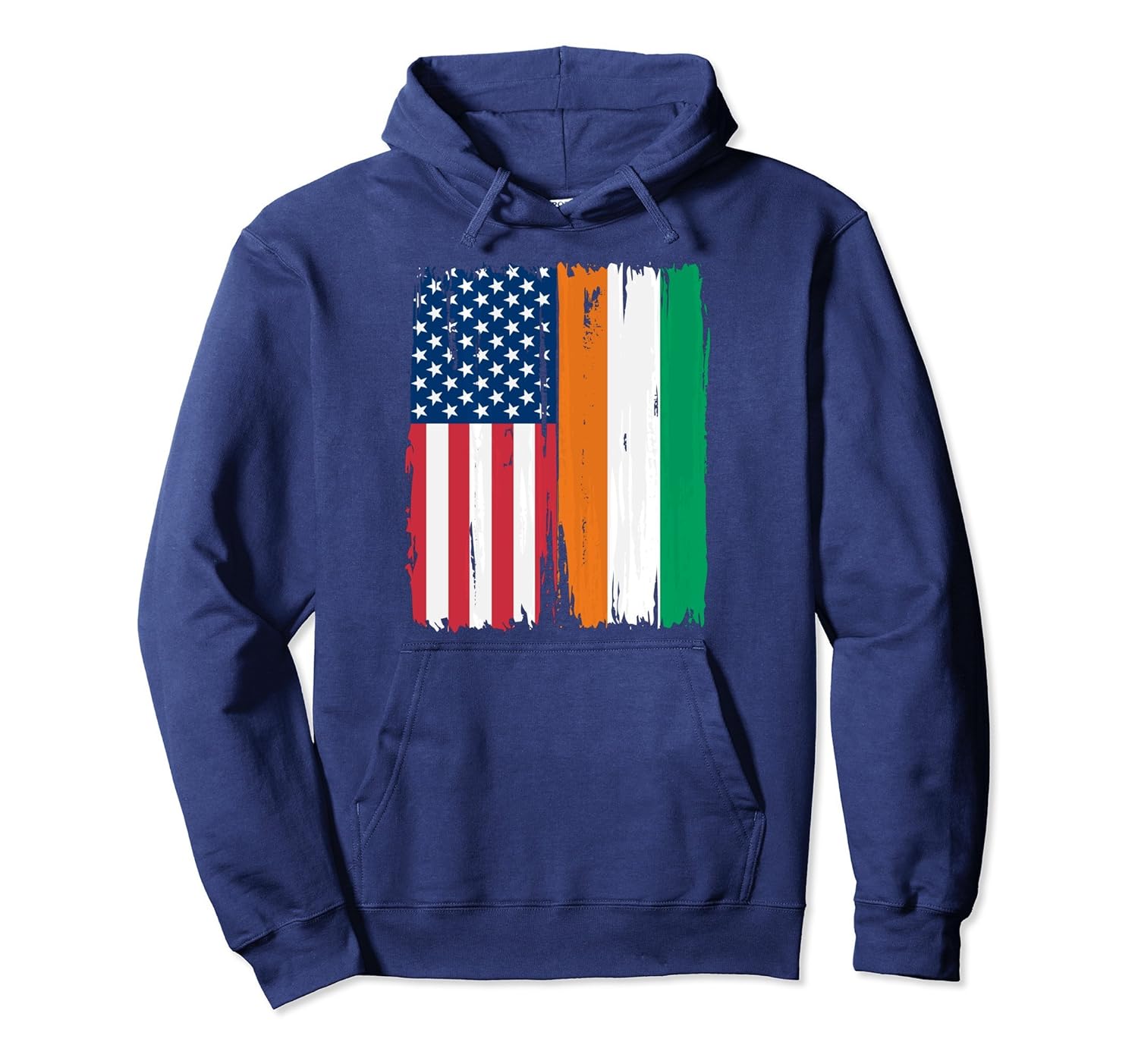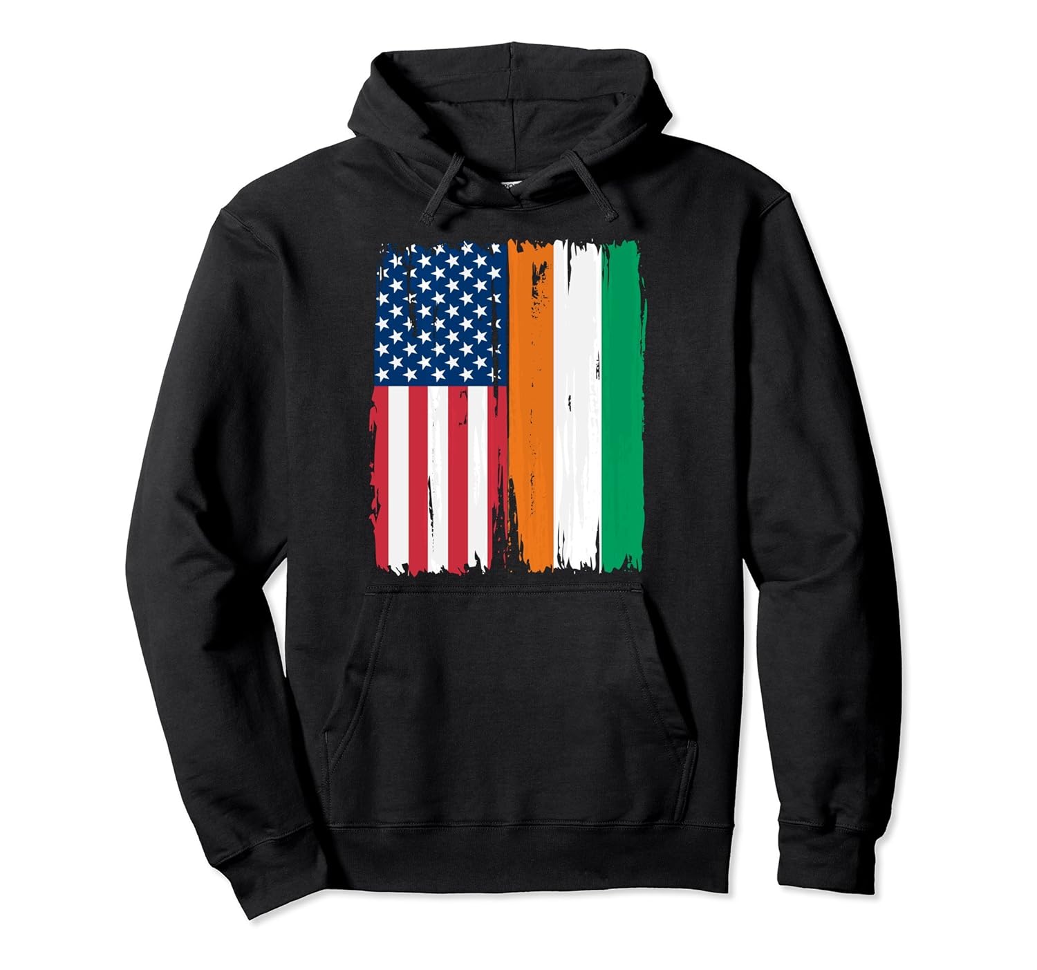 Solid colors: 80% Cotton, 20% Polyester; Heather Grey: 78% Cotton, 22% Poly; Dark Heather: 50% Cotton, 50% Polyester; Imported; Machine wash cold with like colors, dry low heat; If you are proud to be Ivory Coast but feel also like a true patriotic american than show your dual love for the Old Glory The Stars and Stripes The Star-Spangled Banner flag of the United States with this Vintage flag shirt; Celebrate 4th of July in America and Ivory Coast on independence or national Flag Day with this split distressed flag pullover Hoodie. Great Christmas or Birthday Gift to wear on this national holiday or on a visit to Ivory Coast; 8.5 oz, Classic fit, Twill-taped neck