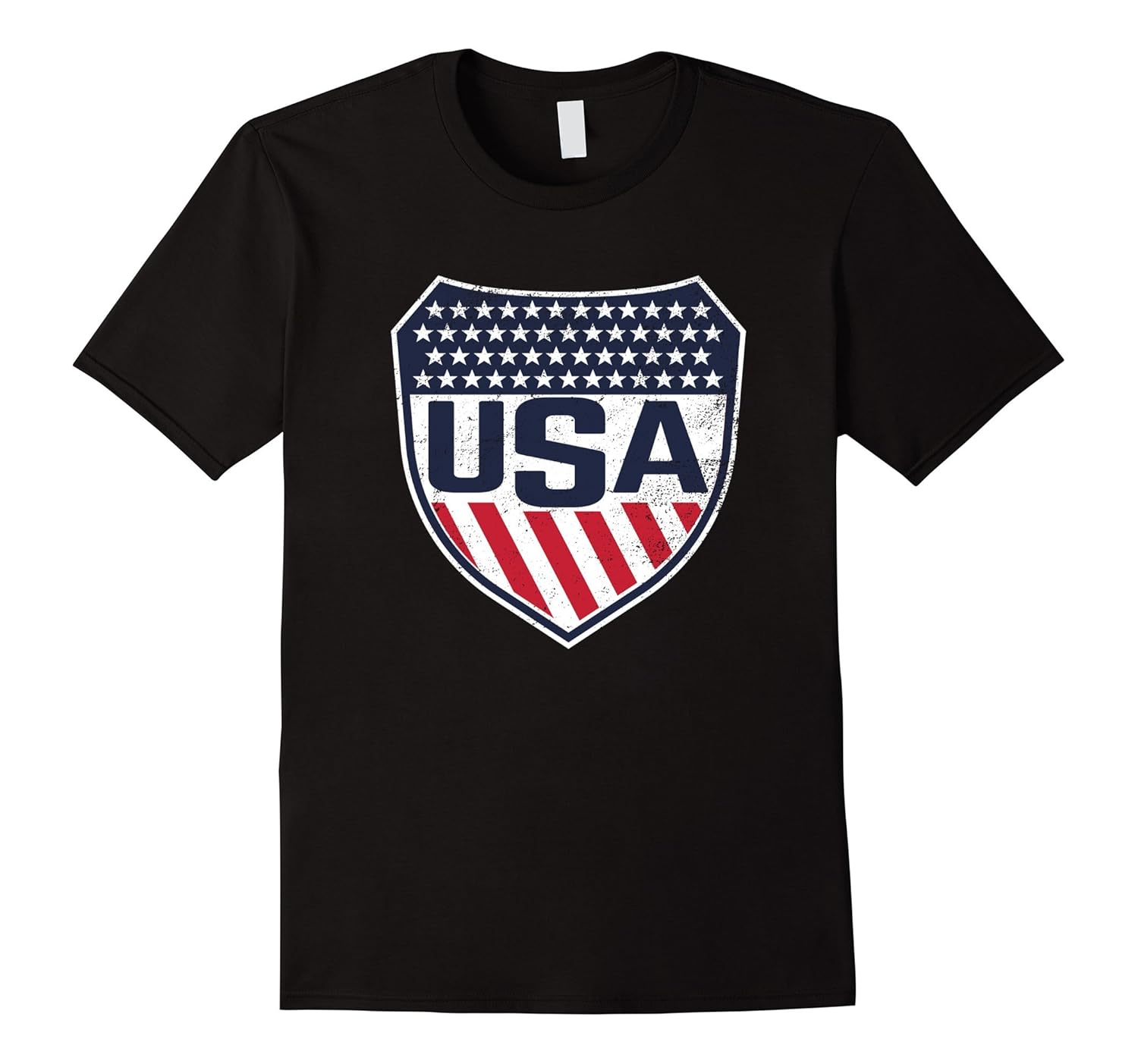 Solid colors: 100% Cotton; Heather Grey: 90% Cotton, 10% Polyester; All Other Heathers: 65% Cotton, 35% Polyester, Imported, Machine wash cold with like colors, dry low heat, Support any USA Team from basketball football baseball rugby soccer volleyball or any other sport, where you want to show your pride for the american land. Show your support to the United States of America team of soccer usa t shirt, football usa t shirt. USA VINTAGE SHIELD FLAG Graphic Tee for men and women is a great gift for Christmas, mother”s day, father”s day or birthdays. Perfect gift idea for mom, dad, brother, sister, son or daughter. Fun to wear everyday at political events if you are democrat, Lightweight, Classic fit, Double-needle sleeve and bottom hem