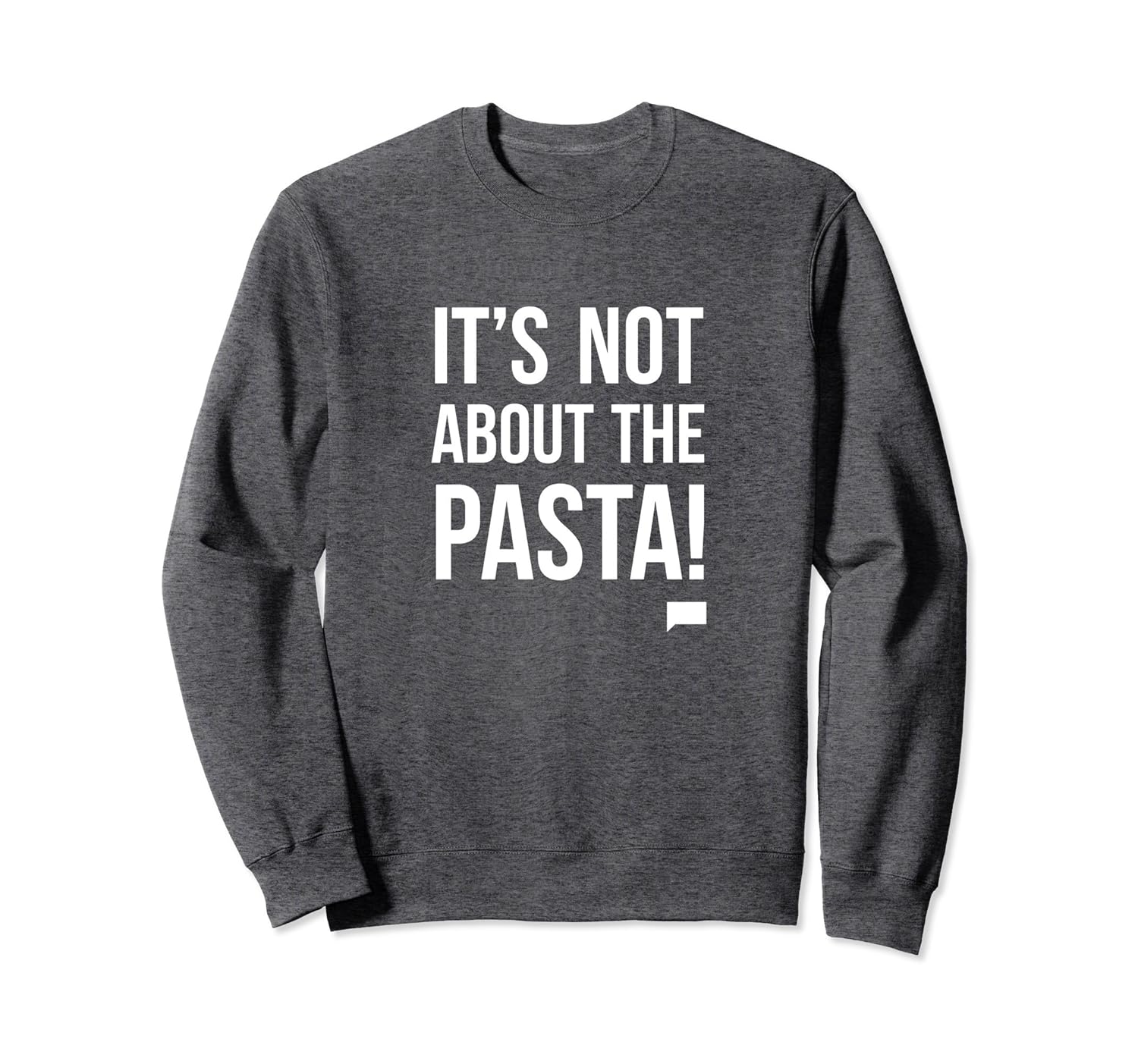 Solid colors: 80% Cotton, 20% Polyester; Heather Grey: 78% Cotton, 22% Poly; Dark Heather: 50% Cotton, 50% Polyester; Imported; Machine wash cold with like colors, dry low heat; Read between the lines… its not about the PASTA! Show you know whats up with this sweatshirt that features the epic message James Kennedy repeatedly shouted at Lala on ep. 7 of Season 6, ITS NOT ABOUT THE PASTA!; Officially Licensed Bravo TV Vanderpump Rules Sweatshirt.; 8.5 oz, Classic fit, Twill-taped neck