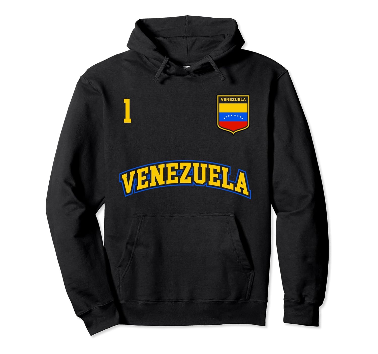 Solid colors: 80% Cotton, 20% Polyester; Heather Grey: 78% Cotton, 22% Poly; Dark Heather: 50% Cotton, 50% Polyester; Imported; Machine wash cold with like colors, dry low heat; Venezuela Soccer Team Pullover Hoodie Number 1. Venezuelan Team Sports Uniform amateur Andamp; professional football players, soccer games Andamp; athletes. Proud Latino Shirt Sports Gear T-Shirt. Fitness Gym Outfit Mens women, Gift for Latino y Latina living in USA.; Tags: Camisa de Seleccion de Futbol de Venezuela Soccer Jersey ball Venezuela Flag Gifts for spanish Andamp; latino immigrants Caracas Viva Venezuela Regalo para Venezoelano Bandera de Venezuela Uniforme Playera Seleccion Venezuelana 2018 Latin America; 8.5 oz, Classic fit, Twill-taped neck