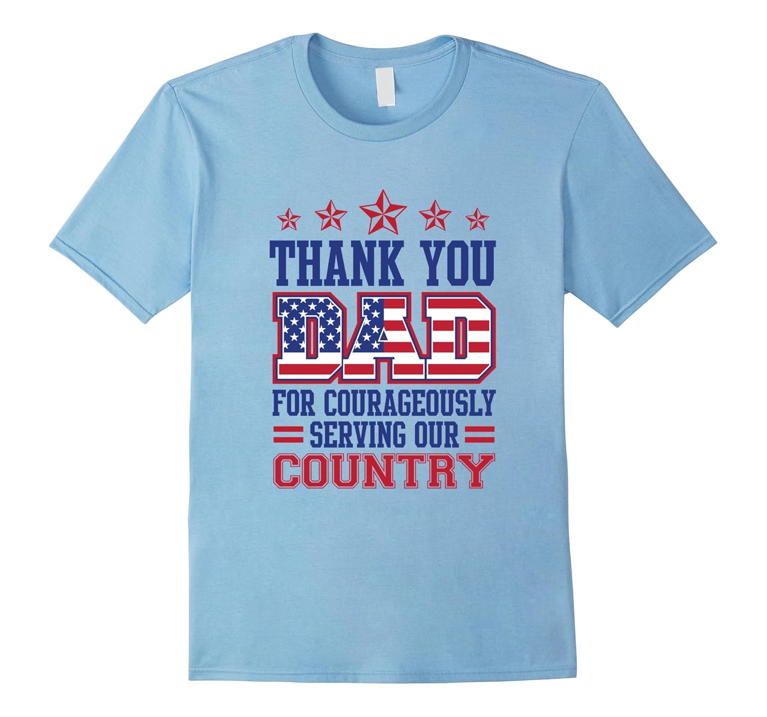 Solid colors: 100% Cotton; Heather Grey: 90% Cotton, 10% Polyester; All Other Heathers: 65% Cotton, 35% Polyester, Imported, Machine wash cold with like colors, dry low heat, Thank you Dad for courageously serving our country honor tee shirt, Veterans, patriotic, honor, remember the veterans, wear this shirt to show your respect to those who served in the military. Lightweight, Classic fit, Double-needle sleeve and bottom hem