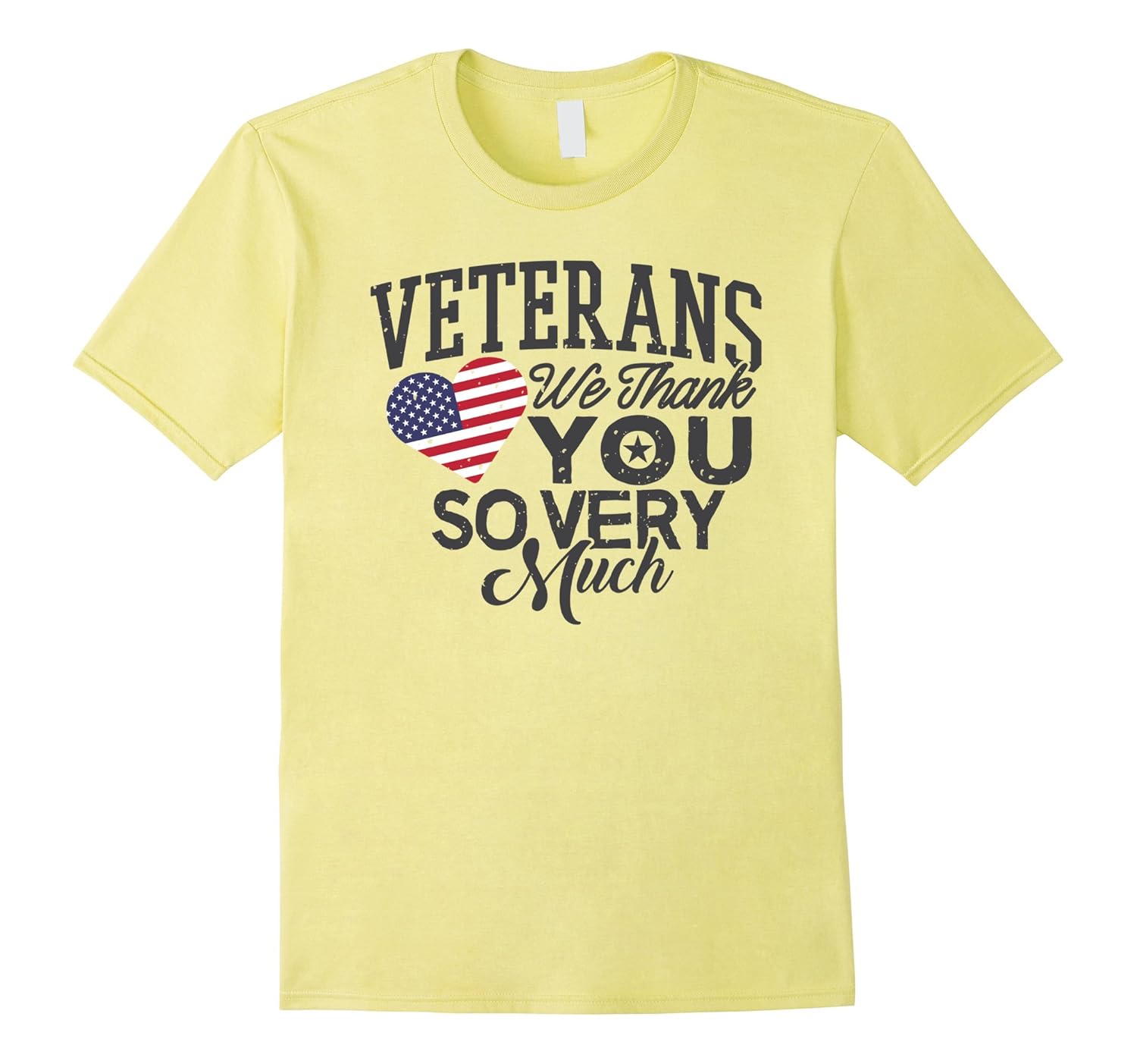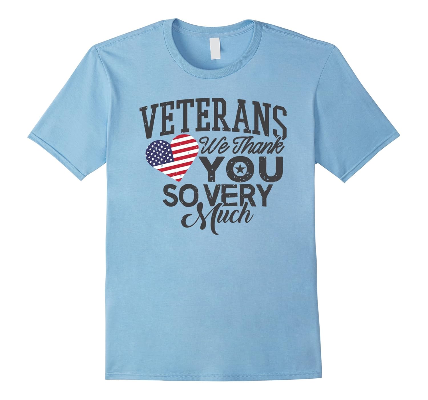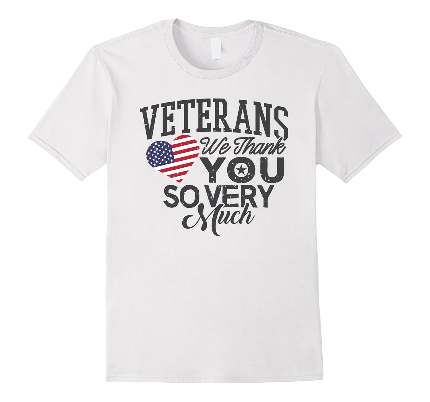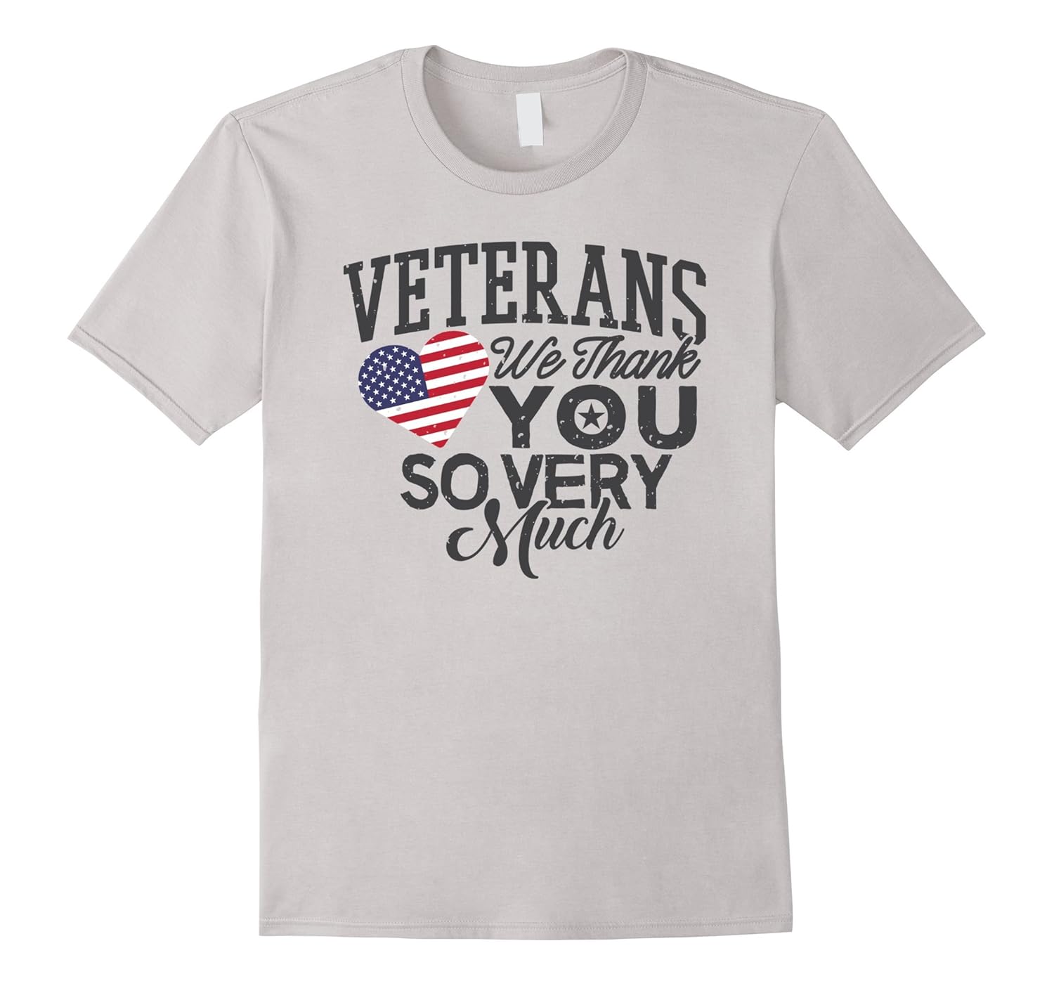 Solid colors: 100% Cotton; Heather Grey: 90% Cotton, 10% Polyester; All Other Heathers: 50% Cotton, 50% Polyester; Imported; Machine wash cold with like colors, dry low heat; Veterans T-Shirt, We Thank You So Very Much Patriotic Shirt for veteran, retired veteran, Army, American Flag, Proud to be a Veteran. Show your appreciation to your favorite soldier.; Give this proud veteran shirt to the brave veteran in your life that has served their country. Perfect Gift for Dad, Grandpa, Husband, Stepdad, Uncle on Fathers Day, Birthday, Anniversaries.; Lightweight, Classic fit, Double-needle sleeve and bottom hem