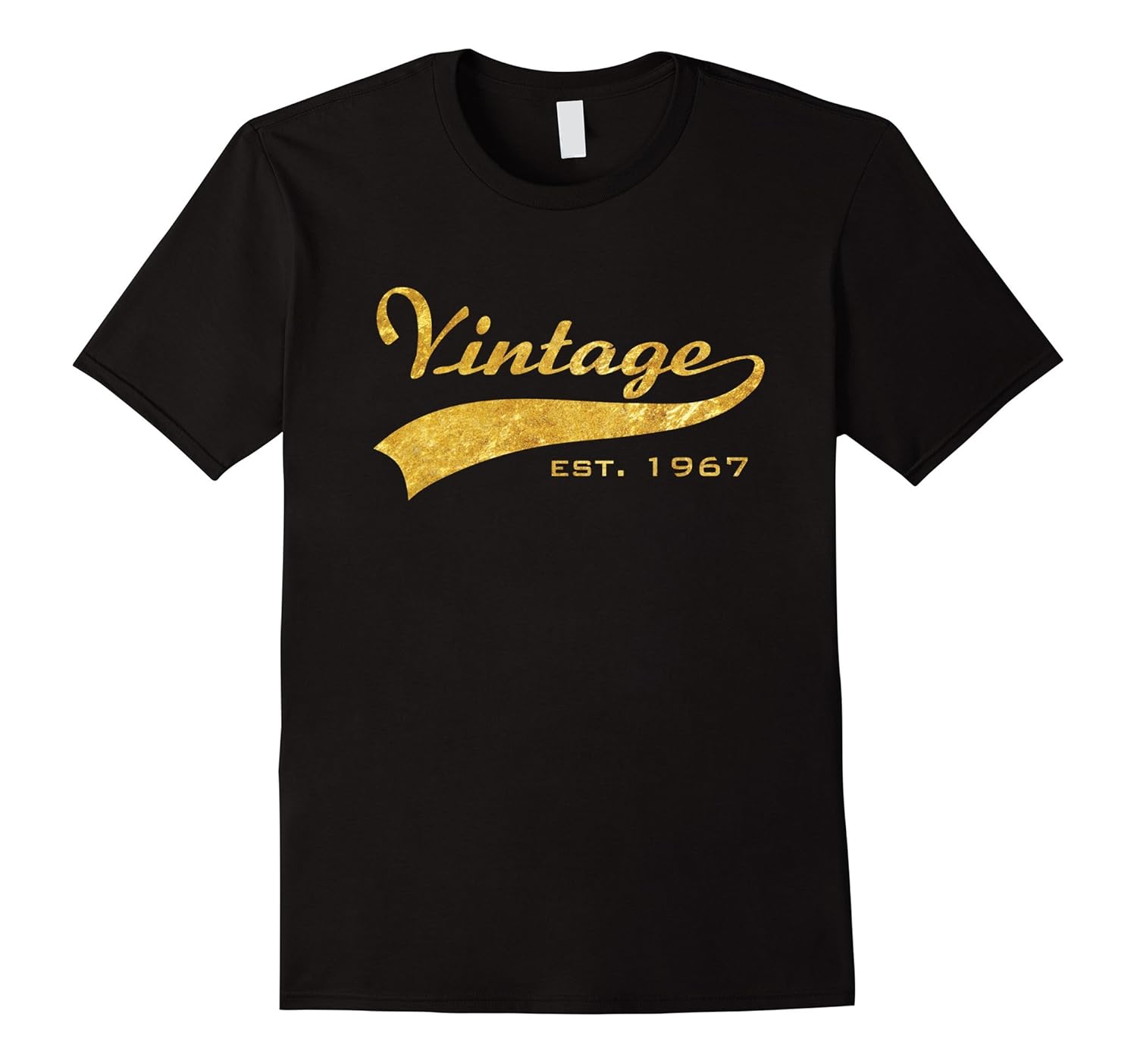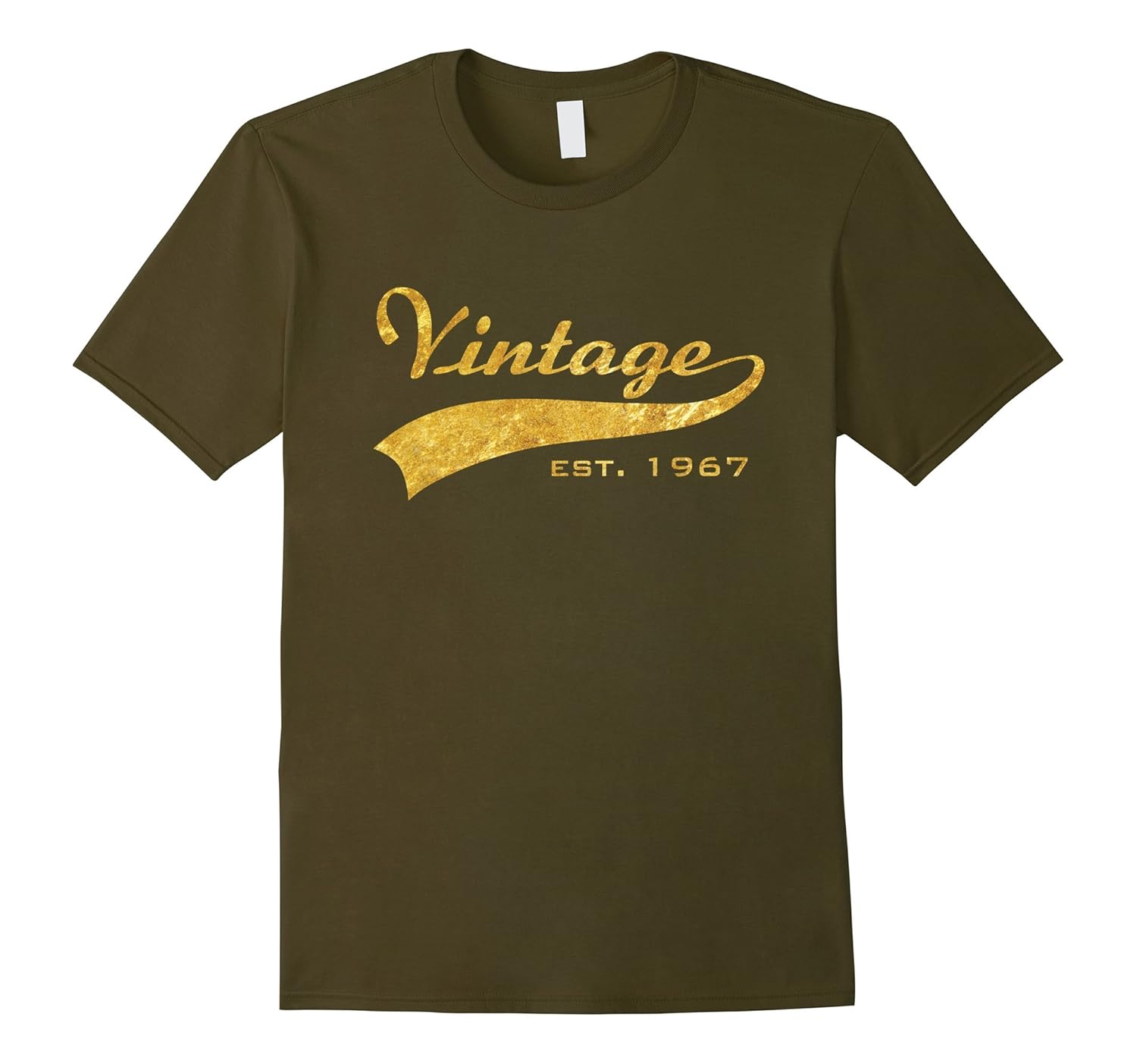 Solid colors: 100% Cotton; Heather Grey: 90% Cotton, 10% Polyester; All Other Heathers: 65% Cotton, 35% Polyester, Imported, Machine wash cold with like colors, dry low heat, SLIM FIT TEE FOR A LOOSE FIT ORDER A SIZE UP: Perfect gift for a senior man or woman turning 50 years old and already becoming a legend, no matter if they were born in January February March April May June July August September October November or December, BEST 50TH BIRTHDAY GIFT IDEA: Cool gold bling design for dad father grandparent uncle mom mother grandmother or aunt on Birthday day, Christmas, Thanksgiving, Wedding, Anniversary, Hanukkah, Halloween with really great saying Legends Are Born In Est 1967, Lightweight, Classic fit, Double-needle sleeve and bottom hem