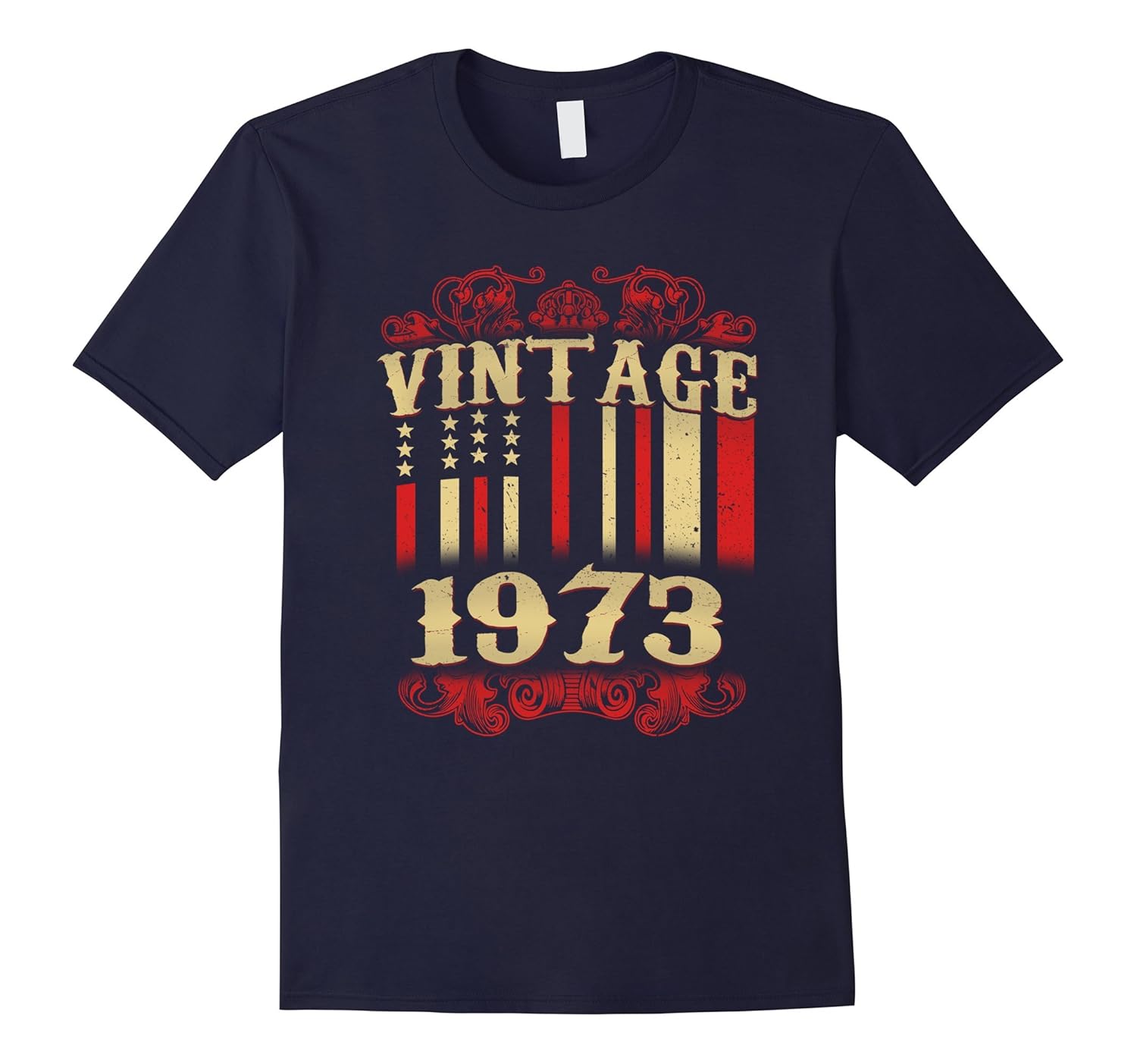 Solid colors: 100% Cotton; Heather Grey: 90% Cotton, 10% Polyester; All Other Heathers: 65% Cotton, 35% Polyester, Imported, Machine wash cold with like colors, dry low heat, Perfect Birthday Gift for people who are born in 1973. Pop effect Vintage Flag Graphic Tee Shirt for 44 years old bday. Retro Pop Premium shirt looks great in five amazing color of your choices and also available different sizes for men women, him her mom dad, ladies girls boys teens, grandma and grandpa. Lightweight, Classic fit, Double-needle sleeve and bottom hem