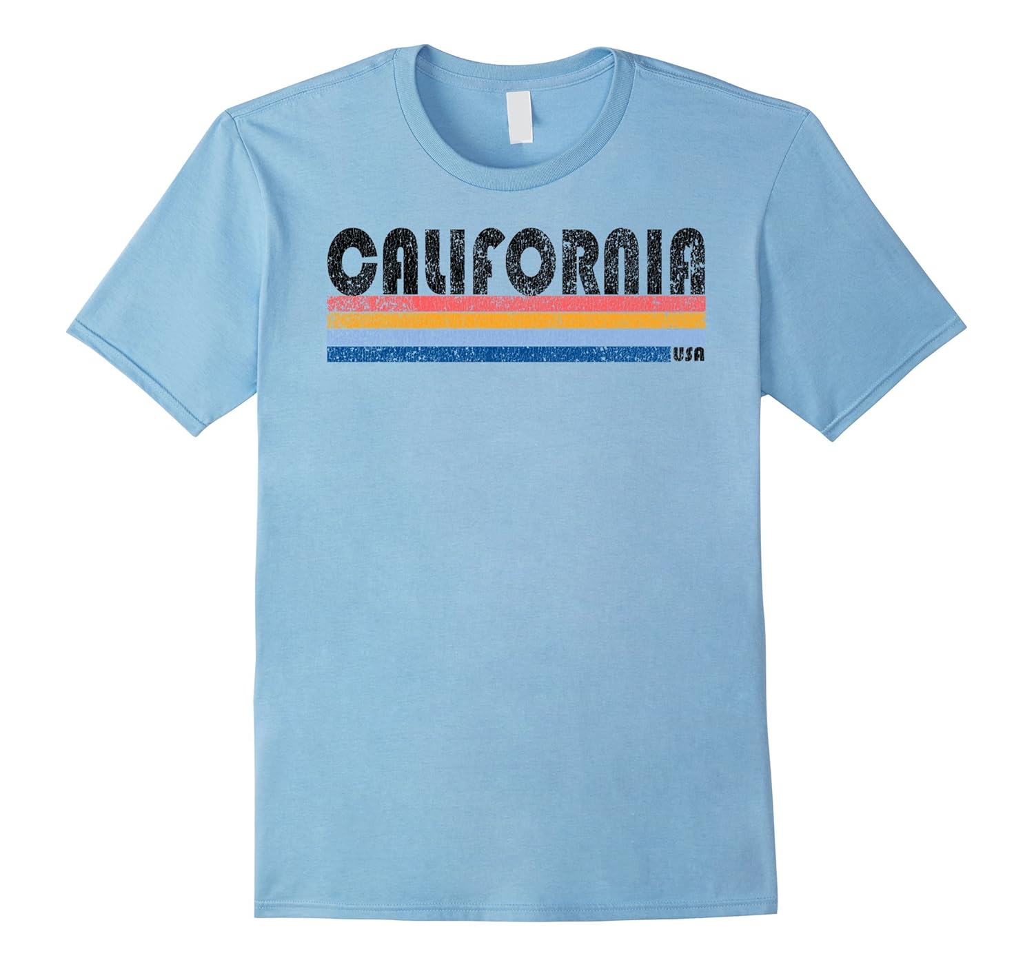 Solid colors: 100% Cotton; Heather Grey: 90% Cotton, 10% Polyester; All Other Heathers: 65% Cotton, 35% Polyester, Imported, Machine wash cold with like colors, dry low heat, This original design state of California makes a great souvenir or gift t-shirt. This graphic tee features a cool distressed retro font with colored stripe underlining. This trendy California shirt is distressed to give it a vintage classic look and is sure to be a hit whenever you wear it. If you prefer a looser fit, please order up a size. Lightweight, Classic fit, Double-needle sleeve and bottom hem
