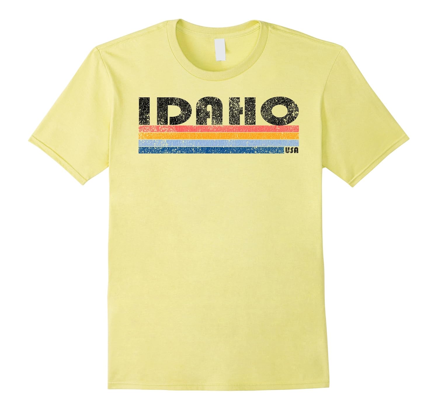 Solid colors: 100% Cotton; Heather Grey: 90% Cotton, 10% Polyester; All Other Heathers: 65% Cotton, 35% Polyester, Imported, Machine wash cold with like colors, dry low heat, This original design state of Idaho makes a great souvenir or gift t-shirt. This graphic tee features a cool distressed retro font with colored stripe underlining. This trendy Idaho shirt is distressed to give it a vintage classic look and is sure to be a hit whenever you wear it. If you prefer a looser fit, please order up a size. Lightweight, Classic fit, Double-needle sleeve and bottom hem