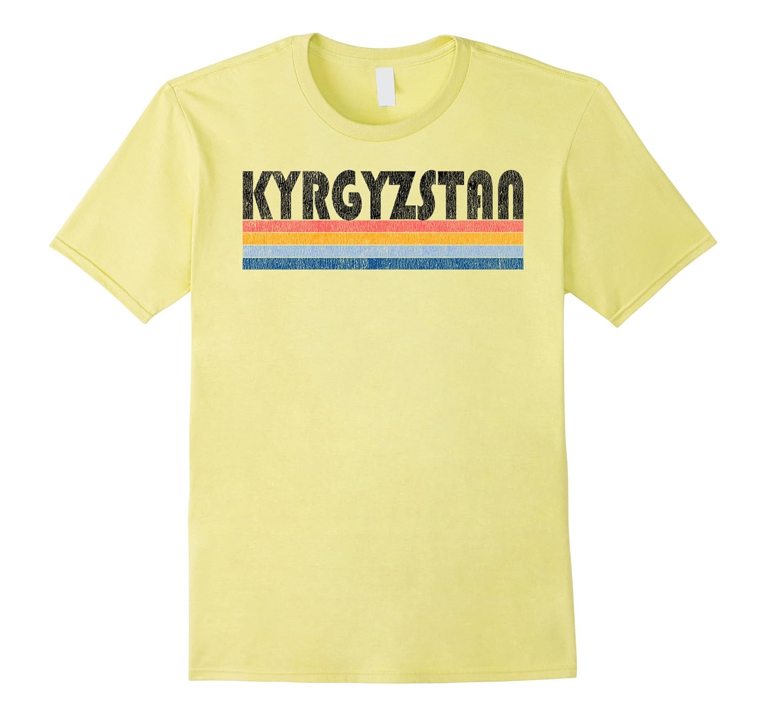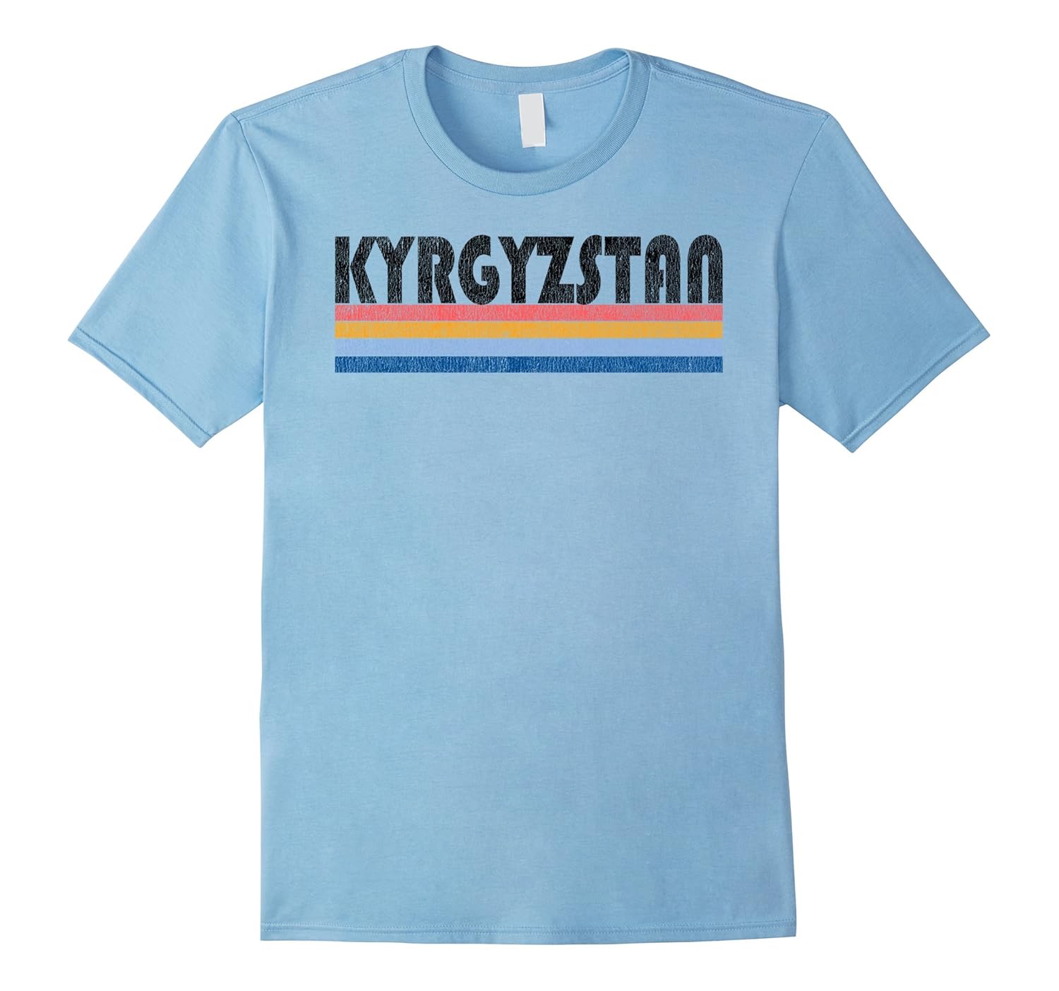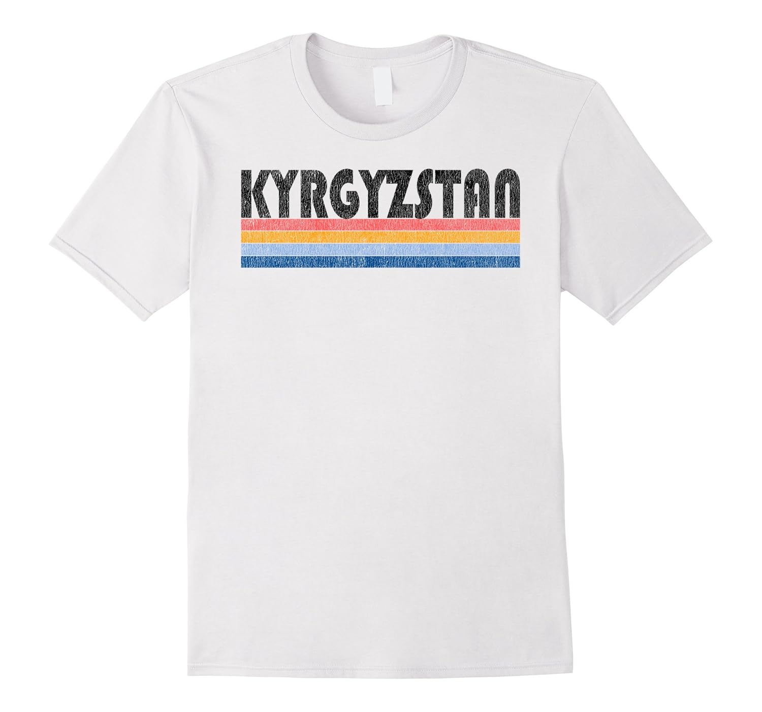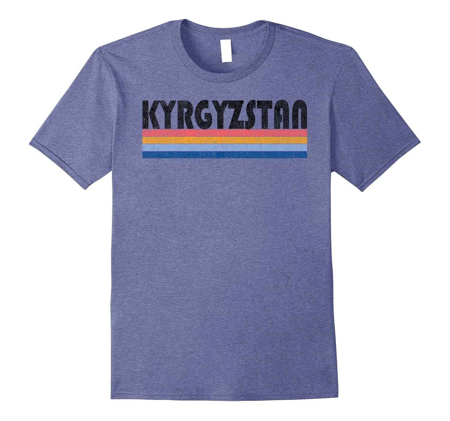 Solid colors: 100% Cotton; Heather Grey: 90% Cotton, 10% Polyester; All Other Heathers: 65% Cotton, 35% Polyester, Imported, Machine wash cold with like colors, dry low heat, Stylish Kyrgyzstan Souvenir t-shirt, gift t-shirt. This graphic tee features a cool retro font with colored stripe underlining. This shirt is distressed to give it a vintage classic look and is sure to be a hit whenever you wear it. Whether you just visited Kyrgyzstan or plan to in the future, this is a must have shirt! Makes a great gift for family and friends. Our shirts are designed for comfort, if you prefer a looser fit, just order up a size. Lightweight, Classic fit, Double-needle sleeve and bottom hem
